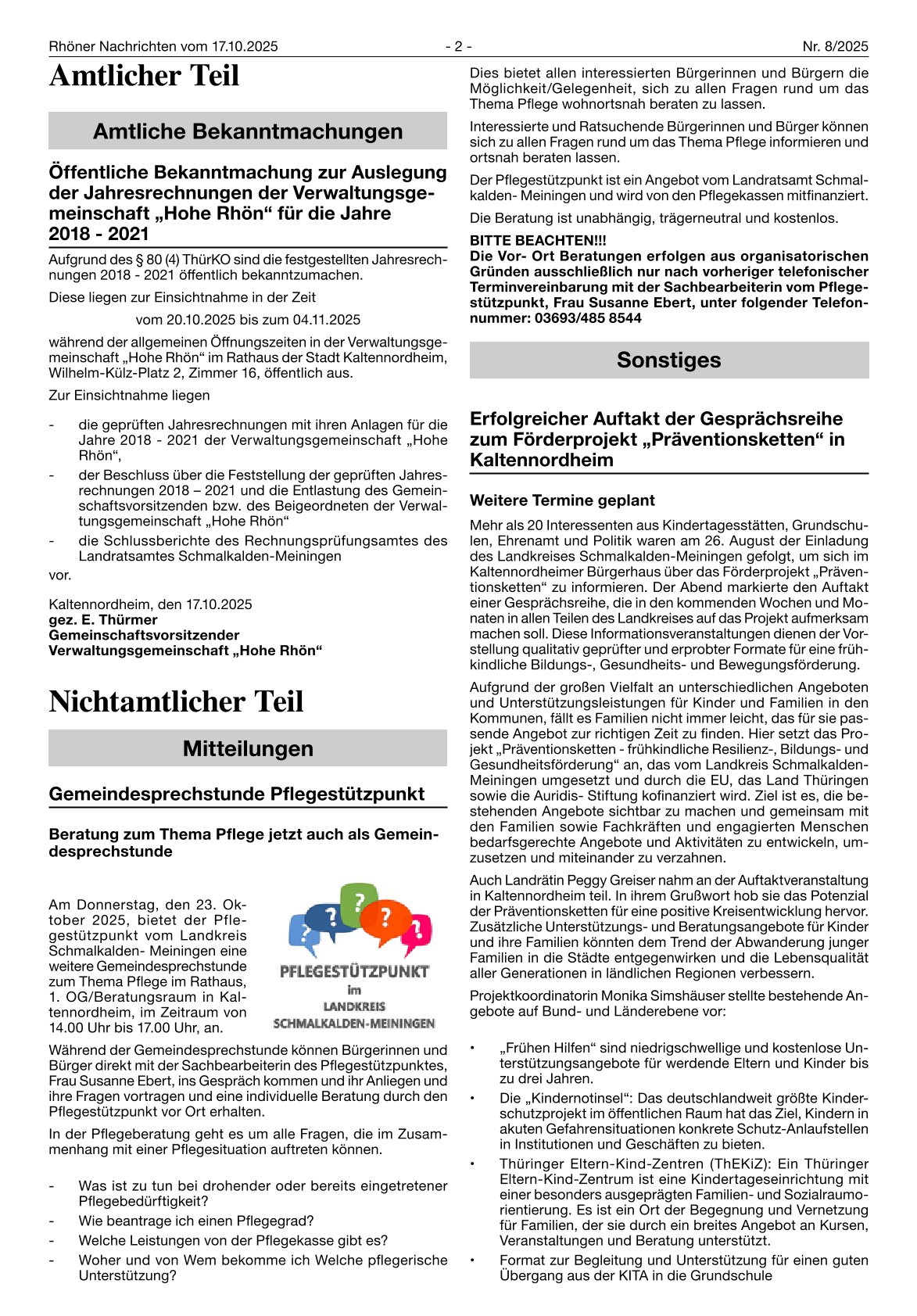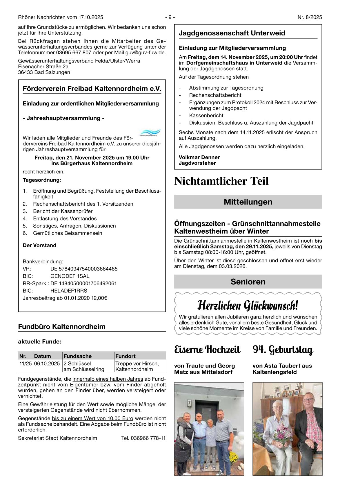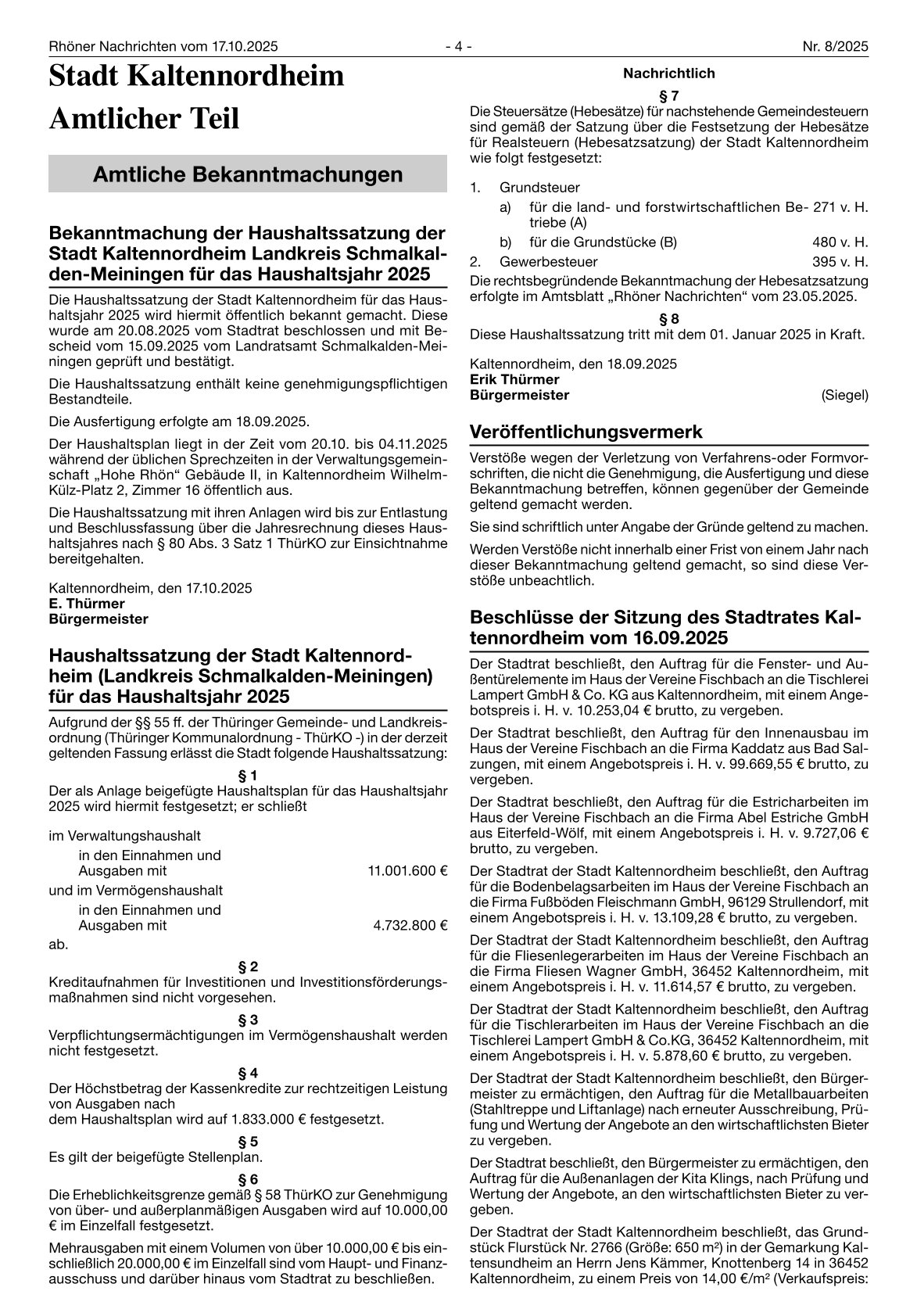 Amtsblatt der VG Hohe Rhön – Oktober Ausgabe 2025