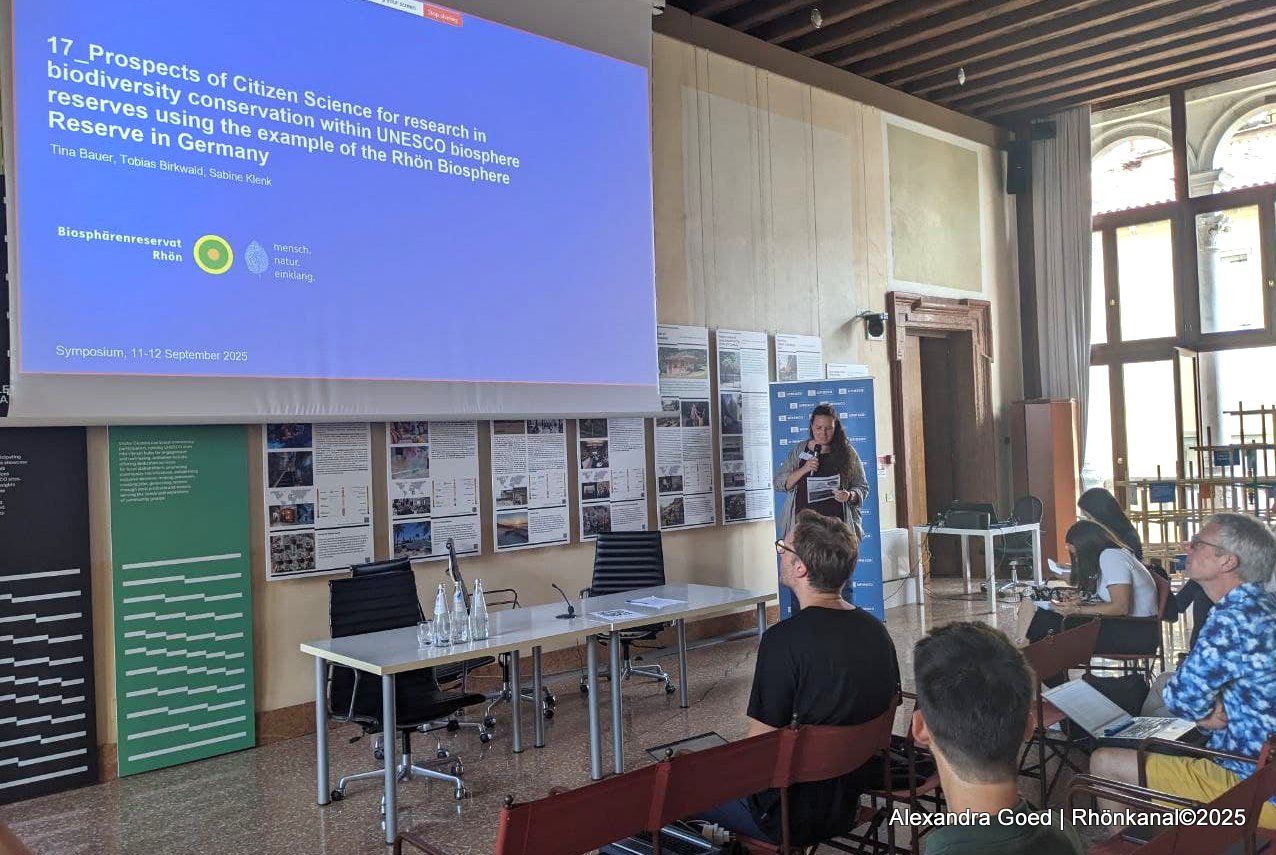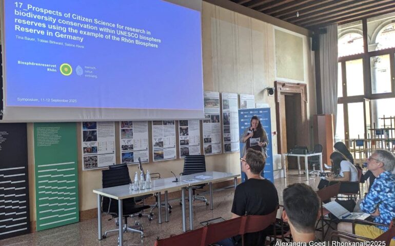 Stellvertretend für das Autorenteam in der Rhön bestehend aus Dr. Tobias Birkwald, Sabine Klenk und Tina Bauer durfte letztgenannte auf Einladung der UNESCO nach Venedig reisen, nicht zuletzt weil sie das Citizen Science Projekt der Bayerischen Verwaltungsstelle des Biosphärenreservats Rhön leitet und die Ehrenamtlichen seit 2020 koordiniert.