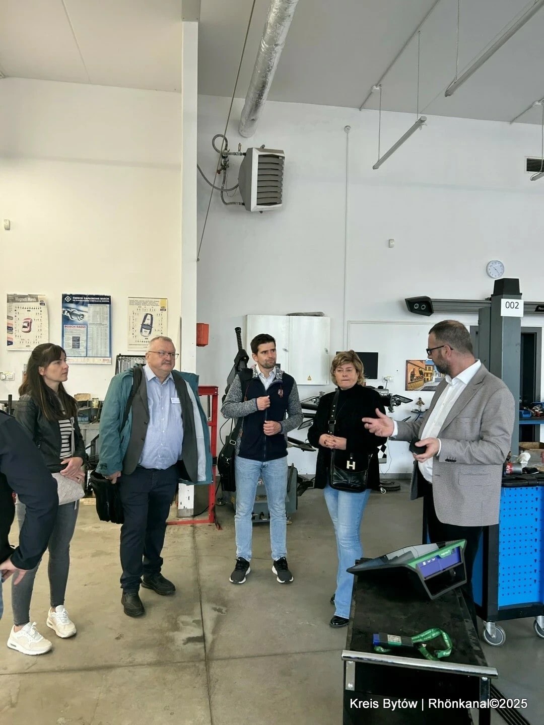 Das zweitägige Programm startete mit einem Besuch des Kreiszentrums für Berufsbildung in Bytów. Direktor Jan Kamiński führte die Gäste durch die Einrichtung und stellte die Ausbildungsberufe der Schülerinnen und Schüler vor.