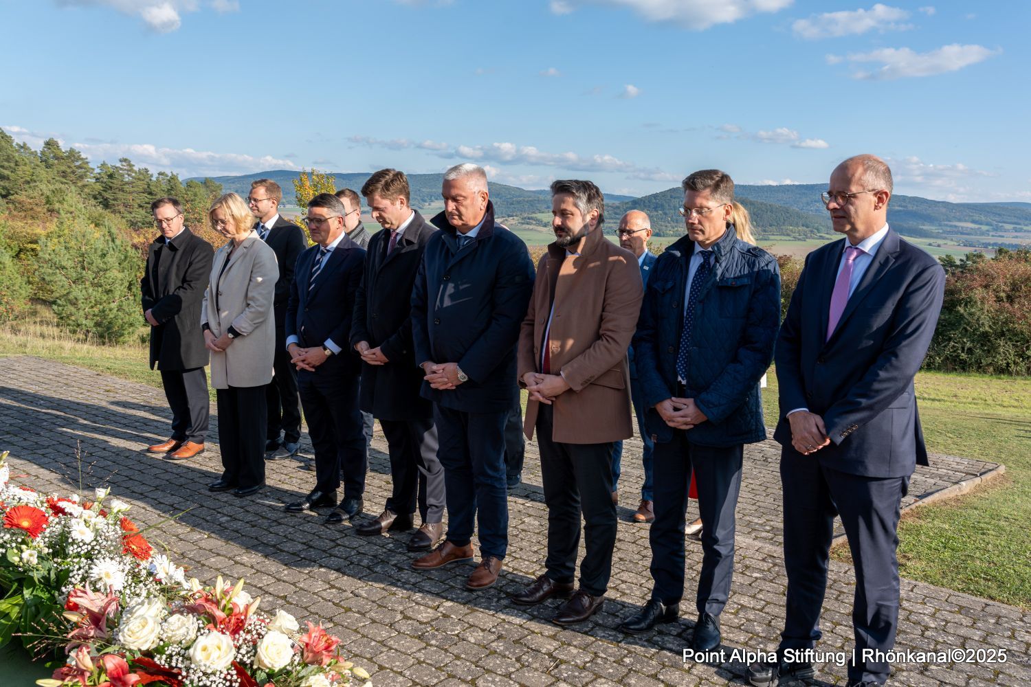 Oberstleutnant Kevin Nieberg (Bundeswehr Landeskommando Hessen), Graig Birchard (Blackhorse Association), Eric Kirsch (Major a.D. US-Army), Mitglieder des Kuratoriums Deutsche Einheit sowie Mitglieder des Stiftungsrats Point Alpha und des Fördervereins Point Alpha.