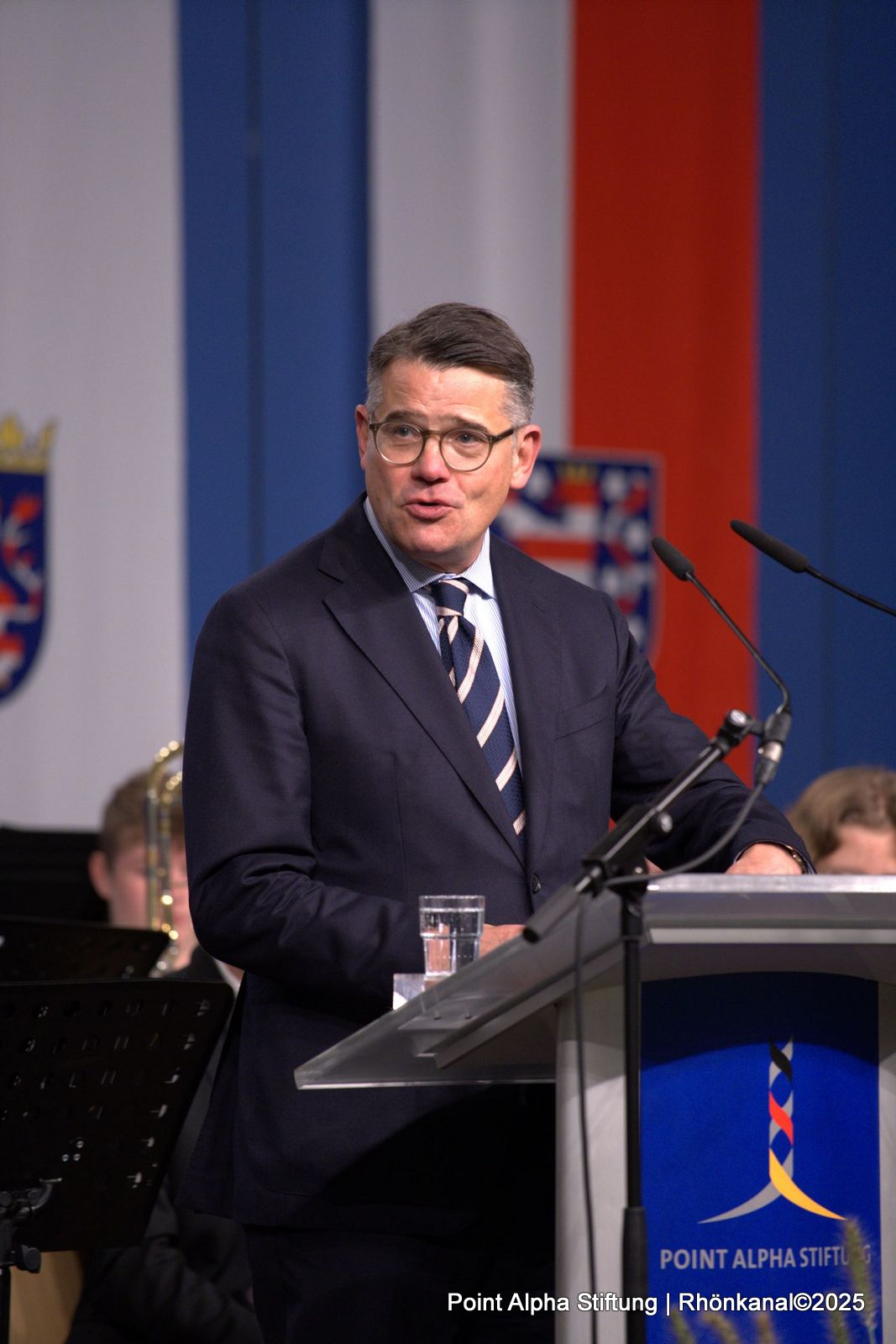 „35 Jahre Deutsche Einheit und 30 Jahre Point Alpha erinnern uns daran: Freiheit ist nicht selbstverständlich. Sie muss errungen und verteidigt werden“, betonte Boris Rhein in seinem Grußwort.