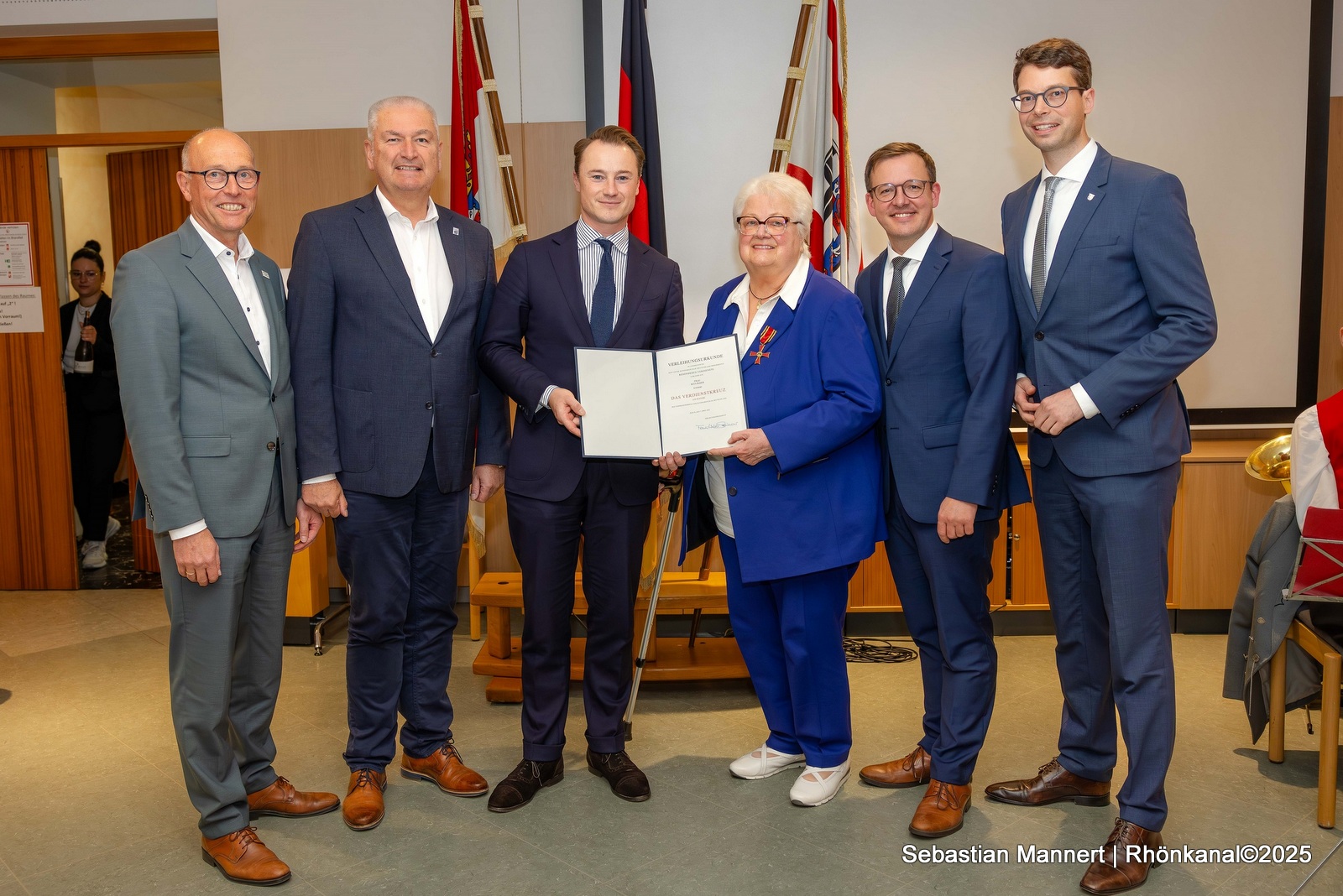 Nun erfolgte die Ehrung mit dem Bundesverdienstorden, den ihr Staatssekretär Benedikt Kuhn überreichte. Zu den Gratulanten zählten neben Rita Baiers Familie auch MdL Sebastian Müller, Landrat Bernd Woide, Erster Kreisbeigeordneter Frederik Schmitt, Rasdorfs Bürgermeister Jürgen Hahn und viele weitere Gäste.