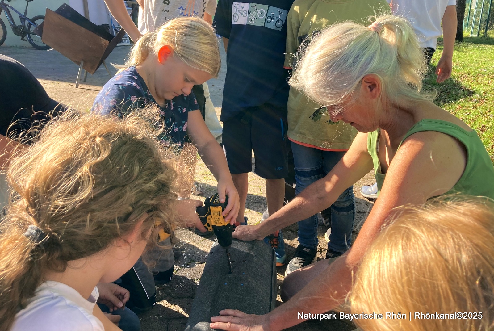 Dann wurde es praktisch: Zwei Niströhren für den seltenen Steinkauz standen auf dem Programm. Mit Akkuschrauber und Hobelspänen machten sich die Junior-Ranger ans Werk.