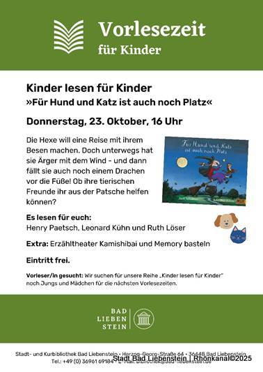 Am Donnerstag, den 23. Oktober 2025 erzählen sie die Geschichte einer Hexe, die eine Reise mit ihrem Besen machen will.