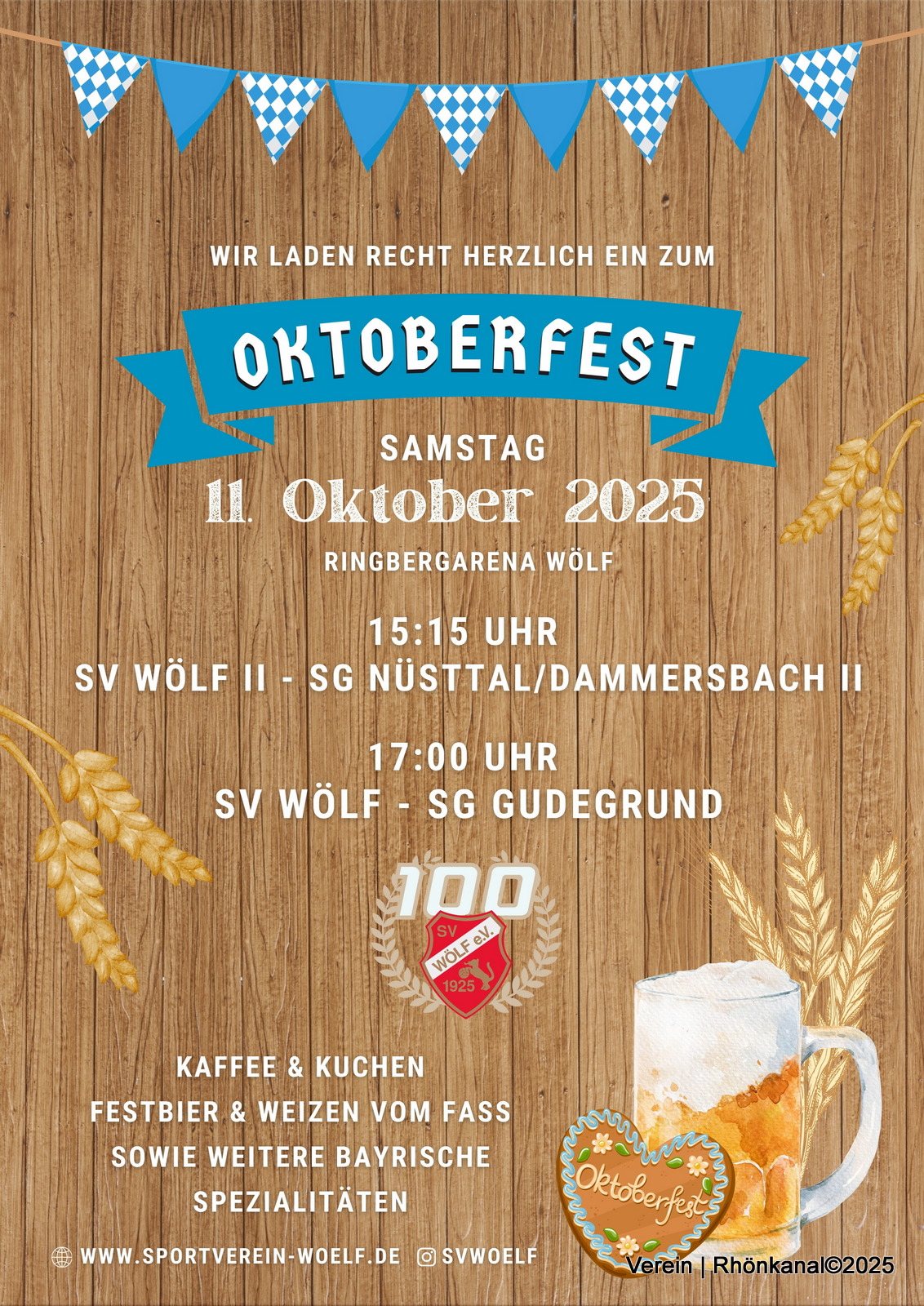 Am Samstag, den 11. Oktober 2025, wird herzlich zum Oktoberfest eingeladen. Der SV Wölf e.V. will die Ringbergarena gemeinsam mit Euch zum Beben bringen!