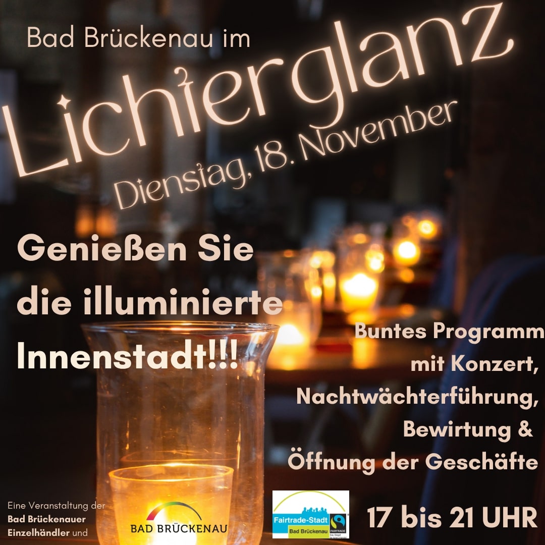 In Bad Brückenau laden die Einzelhändler der Innenstadt gemeinsam mit der Stadtverwaltung am Dienstag, den 18. November 2025, herzlich zum festlichen „Lichterglanz“ ein.
