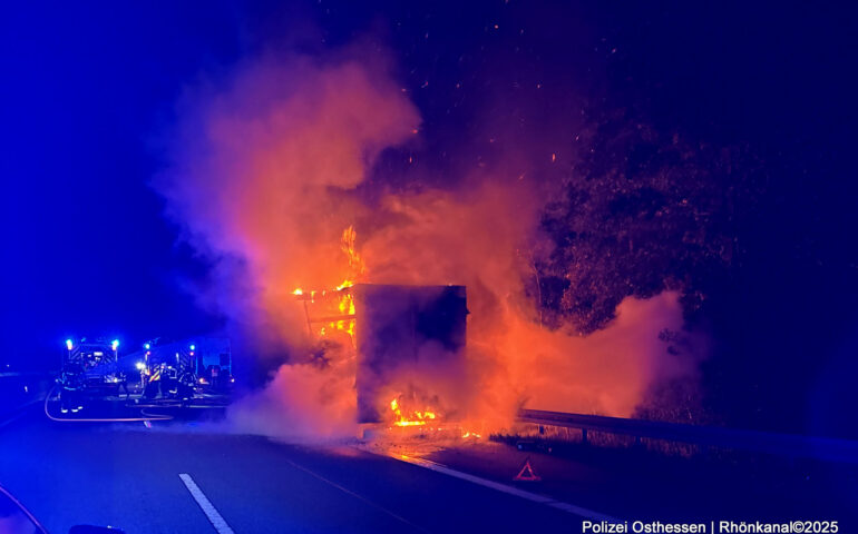 Am Dienstagmorgen wurden die Feuerwehr und die Autobahnpolizei Petersberg gegen 6.30 Uhr zu einem Sattelzug entsandt, der auf der A7 zwischen der Anschlussstelle Fulda-Nord und dem Parkplatz Rotkopf in Fahrtrichtung Kassel in Brand geraten war.