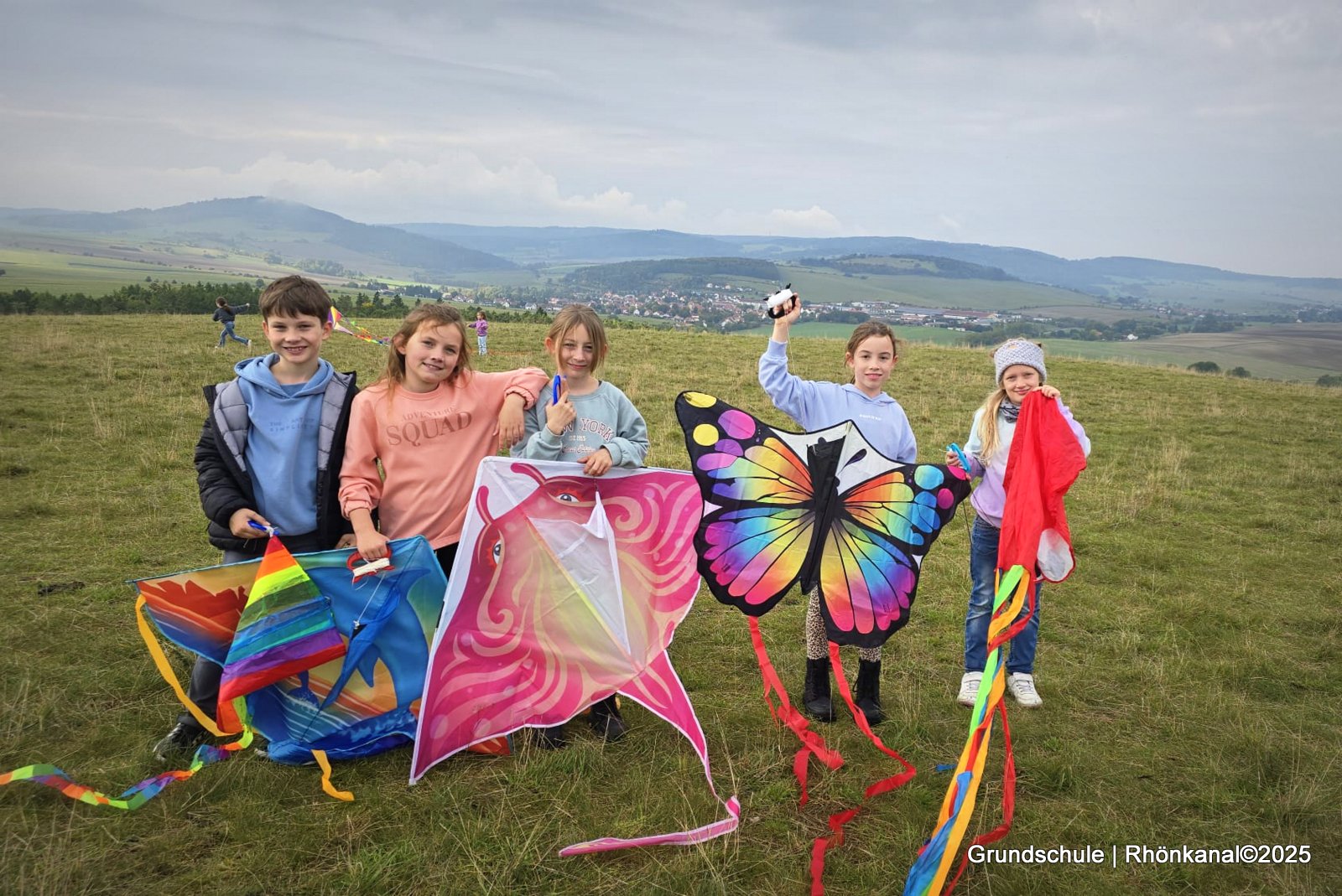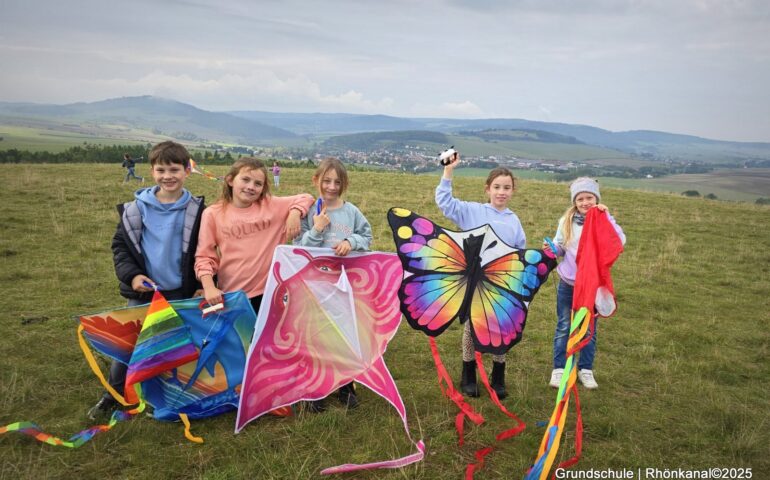 In diesem Jahr zeigte sich die Natur launisch: Die Grundschülerinnen und -schüler ließen sich davon jedoch nicht abschrecken und zauberten trotz windstiller Momente Drachen in den Himmel.