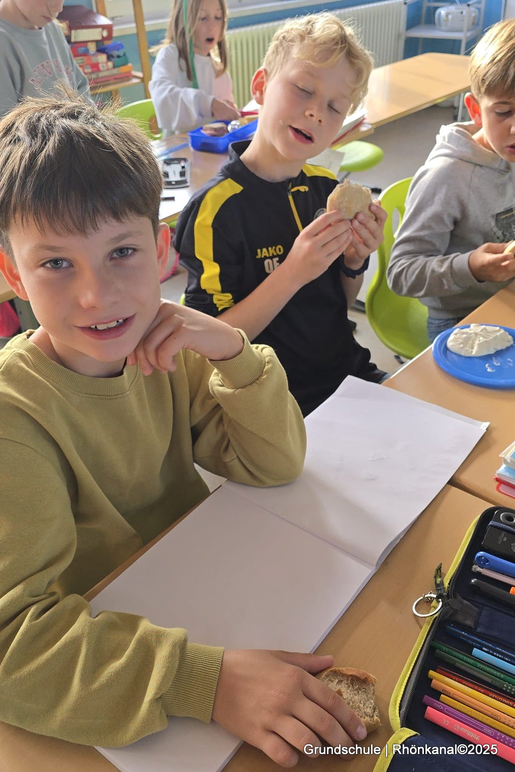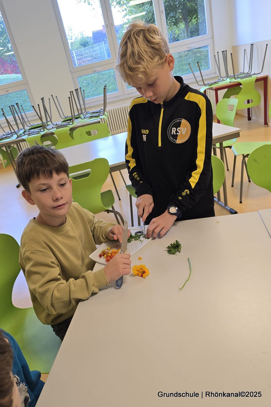 Im Sommer wird gesät, im Herbst geerntet. In der Schulküche wurden vielfältige Brötchenvariationen zubereitet. Besonders gelungen war die Kreation eines Kräuterquarks mit Kräutern aus dem Schulgarten.