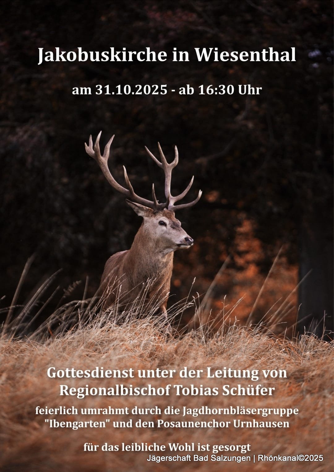 Die Jägerschaft Bad Salzungen lädt am Freitag, den 31. Oktober 2025 zu einemfeierlichen Hubertusgottesdienst in die Jakobuskirche nach