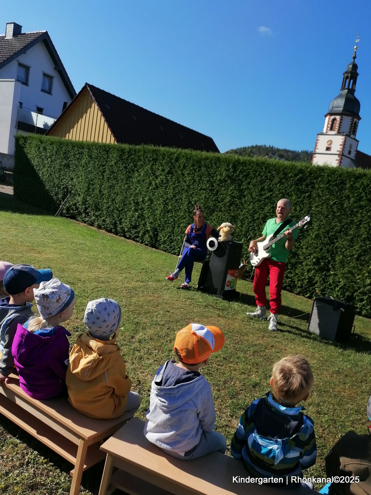 Einen besonderen Tag erlebten die Kinder der Kita zu ihrer Kindertagsfeier mit dem Theater Mittendrin aus Fulda. Die Schauspieler verzauberten nicht nur die Kinder, sondern auch alle Erzieherinnen mit dem Stück: „LOTTA- Schaaafe Helden“.
