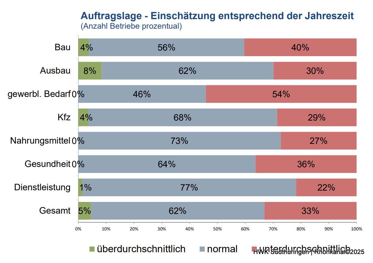 An der Konjunkturumfrage der Handwerkskammer Südthüringen im dritten Quartal 2025 beteiligten sich 512 Betriebe mit 5926 Mitarbeitern. Zum 30. September 2024 waren 6402 Handwerksunternehmen in der Handwerksrolle der HWK Südthüringen registriert.