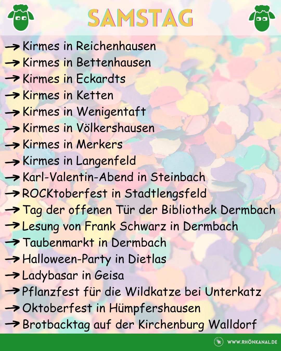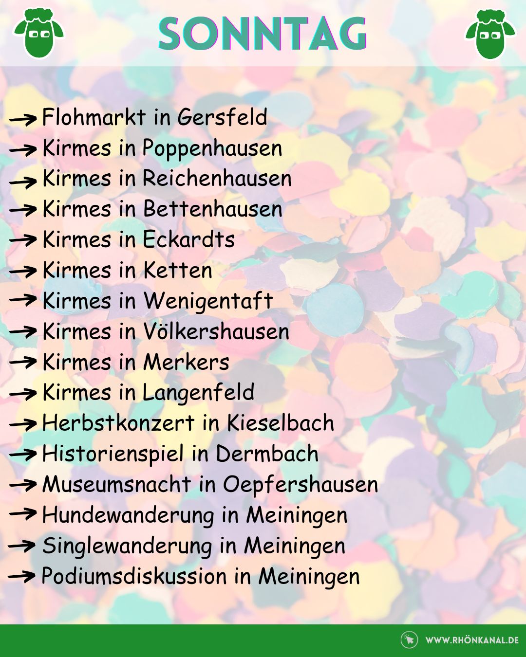 Auch dieses Wochenende heißt es wieder: Die Rhön feiert Kirmes! In Bettenhausen, Reichenhausen, Eckardts, Ketten, Wenigentaft, Völkershausen, Merkers, Langenfeld und Poppenhausen bitten die Burschen und Mädels zum Tanz.