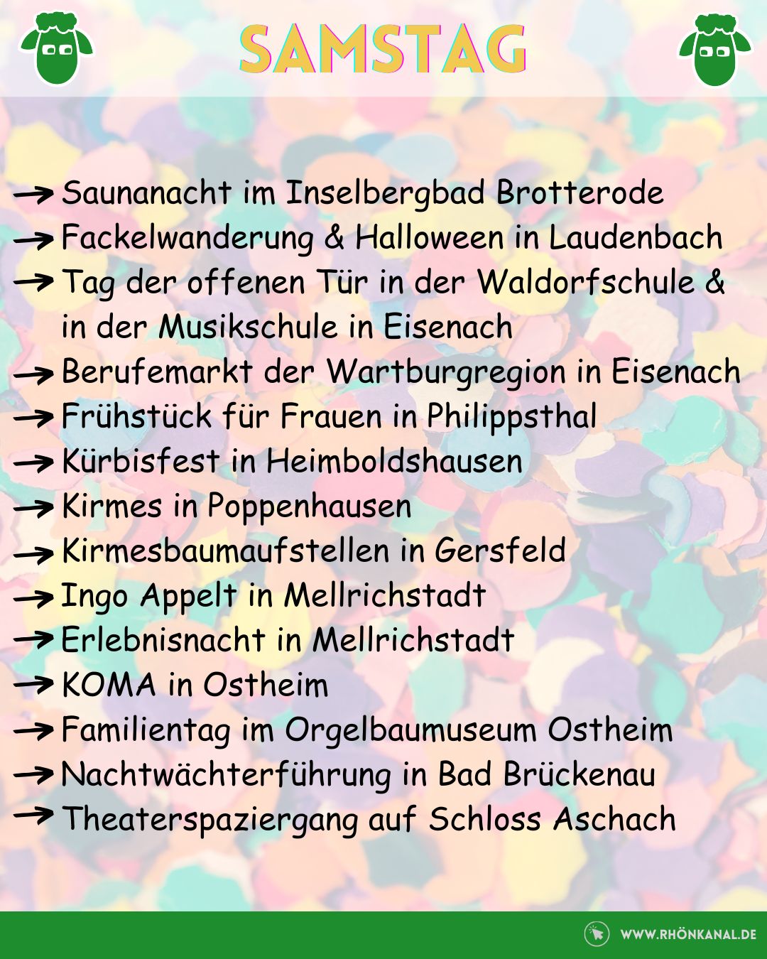 Das Lichterfest in Meiningen, die Oktoberfeste in Stadtlengsfeld und Hümpfershausen oder auch das Konzert von KOMA in Ostheim werden nur einige der Publikumsmagneten sein, die ihr auf keinen Fall verpassen solltet.