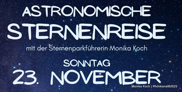 Am Sonntag, 23. November findet um 17:30 Uhr eine „Astronomische Sternenreise in Bad Brückenau“ mit dem Titel "Sternenreise von der Himmelsscheibe zur Raumstation" mit einem anschließenden Dinner statt.