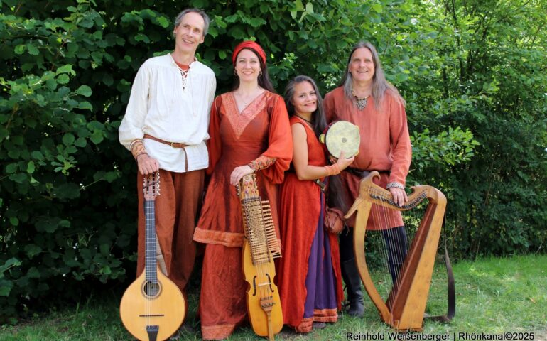 Das Ensemble Triskilian präsentiert auf vielen historischen Instrumenten und mit mehrstimmigem Gesang mittelalterliche Liebeslieder, marianische Lobpreisungen und Stücke über die heilige Hildegard von Bingen.