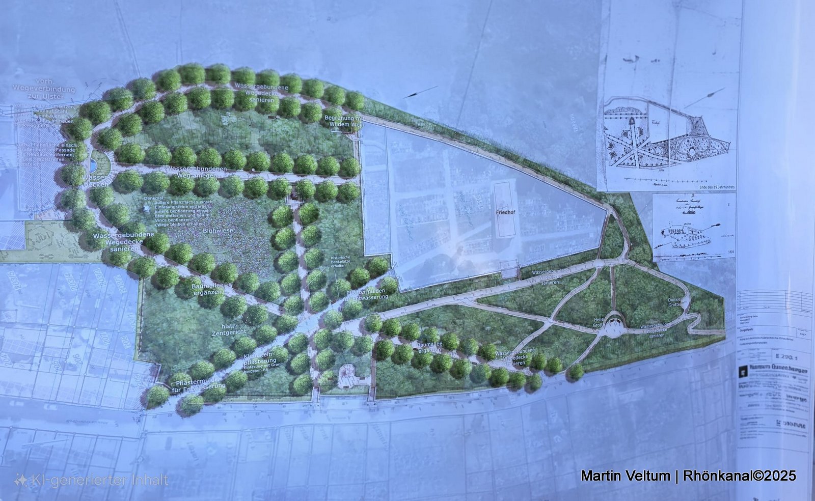 Die Arbeiten umfassen die Erneuerung der Wege und Sitzgelegenheiten, die behutsame Anpassung des Baumbestands sowie die Integration eines neuen Wasserelements in Form eines Brunnens. Alle Schritte erfolgen in enger Abstimmung mit dem Denkmalschutz.