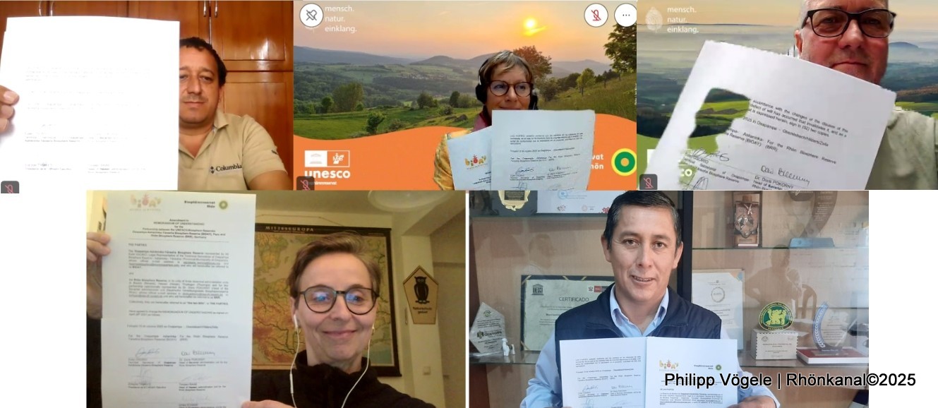 Mit der Unterzeichnung der Verlängerungserklärung durch Vertreterinnen und Vertreter aus Rhön und BIOAY – Dr. Doris Pokorny (Bayerische Verwaltungsstelle), Torsten Raab (Hessische Verwaltungsstelle) und Ulrike Schade (Thüringer Verwaltungsstelle) aus der Rhön sowie Euler Osorio (Vertreter des technischen Sekretariats von BIOAY) und Ericzon Tamayo (Präsident der Exekutivkommission BIOAY) aus Peru - wurde die Zusammenarbeit offiziell fortgesetzt.