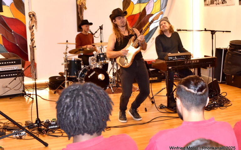 Ulrich Ellison (Bandleader, Gitarre, Sänger), Bryce Christian Powell, (Keyboard) und Dietmar Gösseringer, (Schlagzeug) ließen den Andachtsraum der JVA erbeben.
