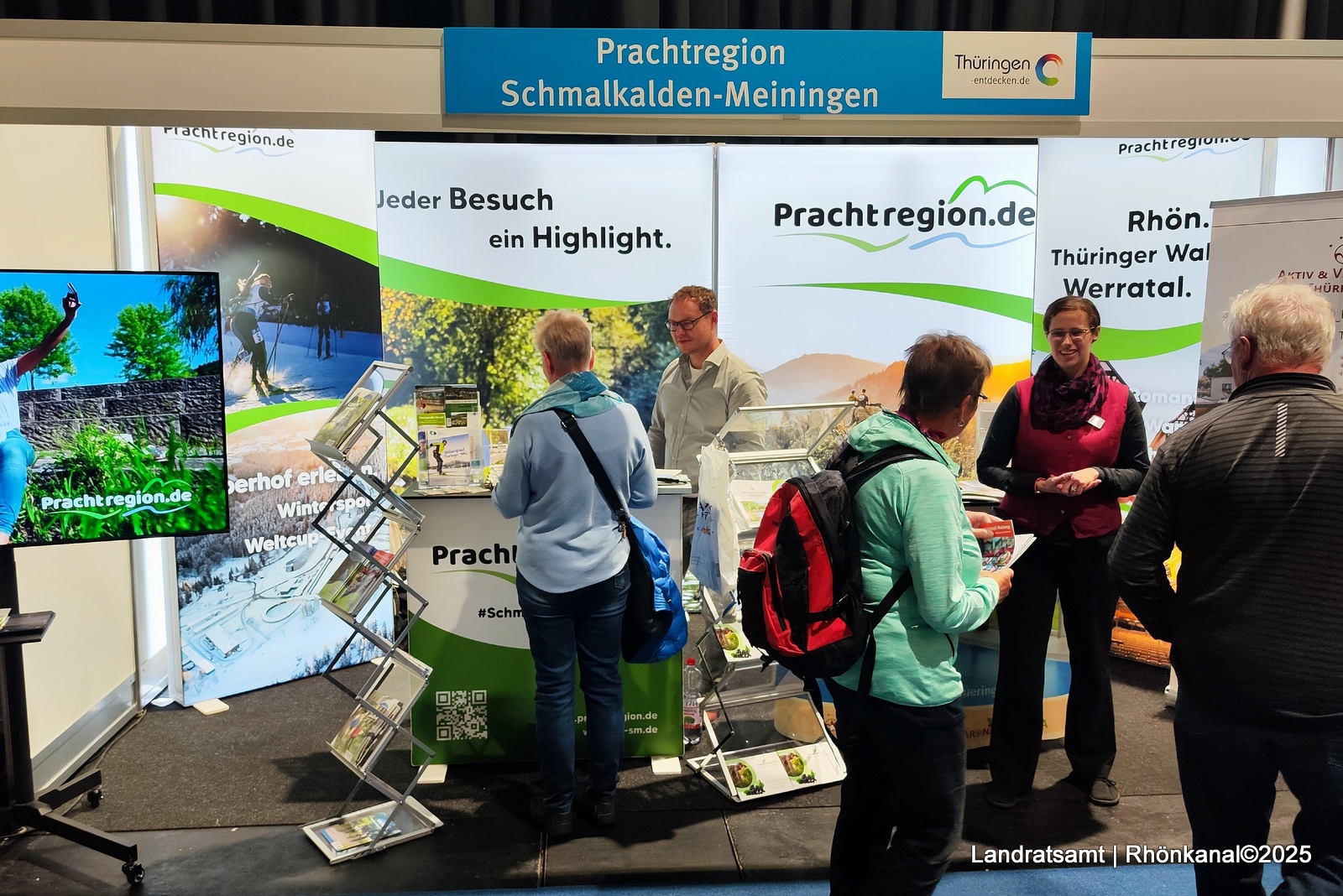 Neben den Tourist-Informationen aus Brotterode-Trusetal, Zella-Mehlis, Schmalkalden und Steinbach-Hallenberg präsentieren sich auch regionale Gastgeber am Stand des Landkreises: das Aktiv & Vital Hotel Thüringen in Schmalkalden, das Hotel Waldmühle in Zella-Mehlis sowie das Hotel Pfefferstübchen in Brotterode-Trusetal.