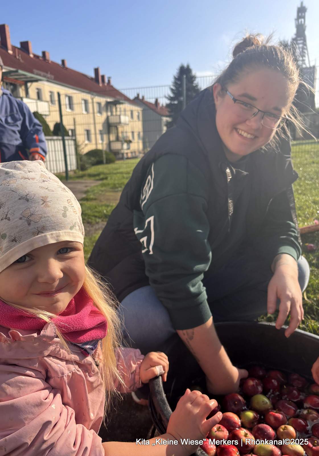 Das nächste Projekt der Kita stand unter dem Motto „Apfelzeit im Kindergarten“. Die Kinder haben die vielen roten Äpfel der vollen Apfelbäume im Kindergarten geerntet, die schon lange ihre Blicke auf sich zogen. Gemeinsam gingen die Kinder mit ihren Erzieherinnen auf Entdeckungsreise und stellten Fragen rund ums Thema.