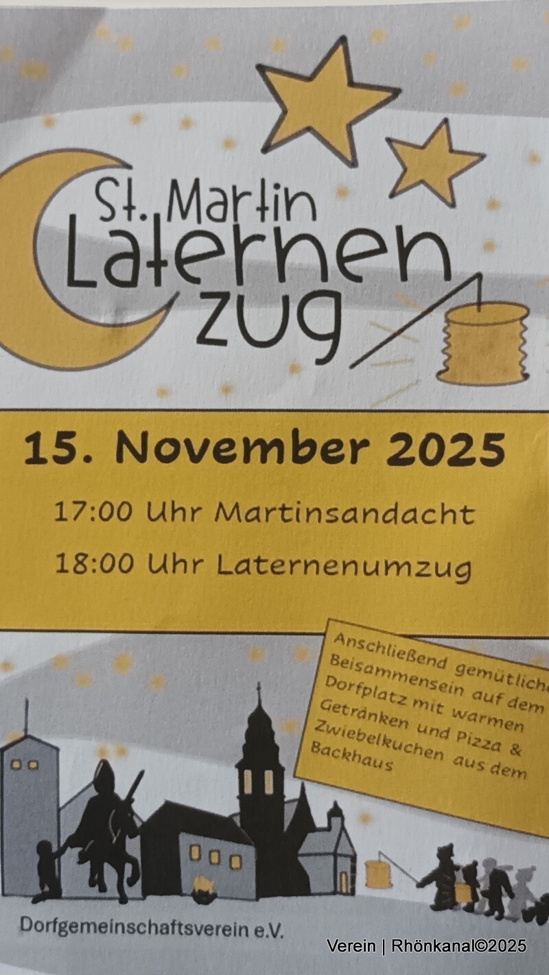 Der Dorfgemeinschaftsverein Unterkatz lädt am Samstag, den 15. November 2025 um 17 Uhr zur Martinsandacht in die evangelische Kirche nach Unterkatz ein. Im Zusammenhang mit dem Brauchtum um den Martinstag findet danach ab 18 Uhr ein Laternenumzug statt.