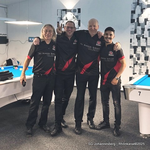Auch in den Bezirksligen wurde fleißig gepunktet. Das Team vier der SG Johannesberg mit Carsten Winheim, Alex Peer, Marco Laminski und Sebastian Hofman gewann mit 7:1 auswärts in Kahl am Main und rangiert auf Platz 2.