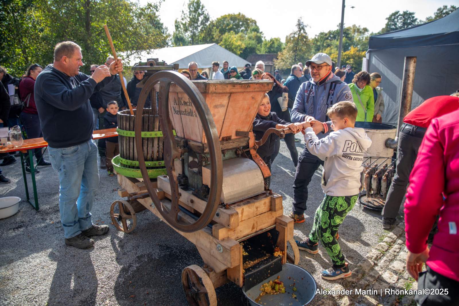 Ergänzt wurde das herbstliche Programm durch das traditionelle Apfelsaftpressen: An der Spindelpresse durfte kräftig mit angepackt werden, und der frisch gepresste, naturtrübe Saft fand viele begeisterte Abnehmer.