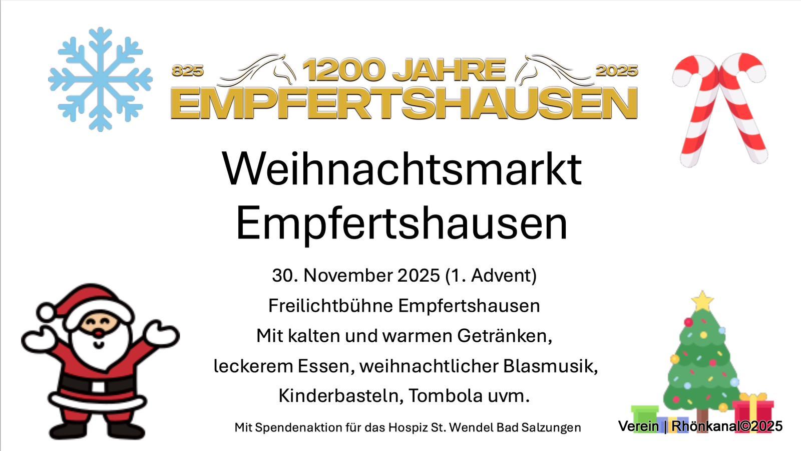 Empfertshausen bereitet sich auf einen stimmungsvollen Auftakt in die Weihnachtszeit vor. Am ersten Adventssonntag, dem 30. November 2025, findet wieder der beliebte und traditionelle Weihnachtsmarkt von 13 bis 20 Uhr im Ort statt.