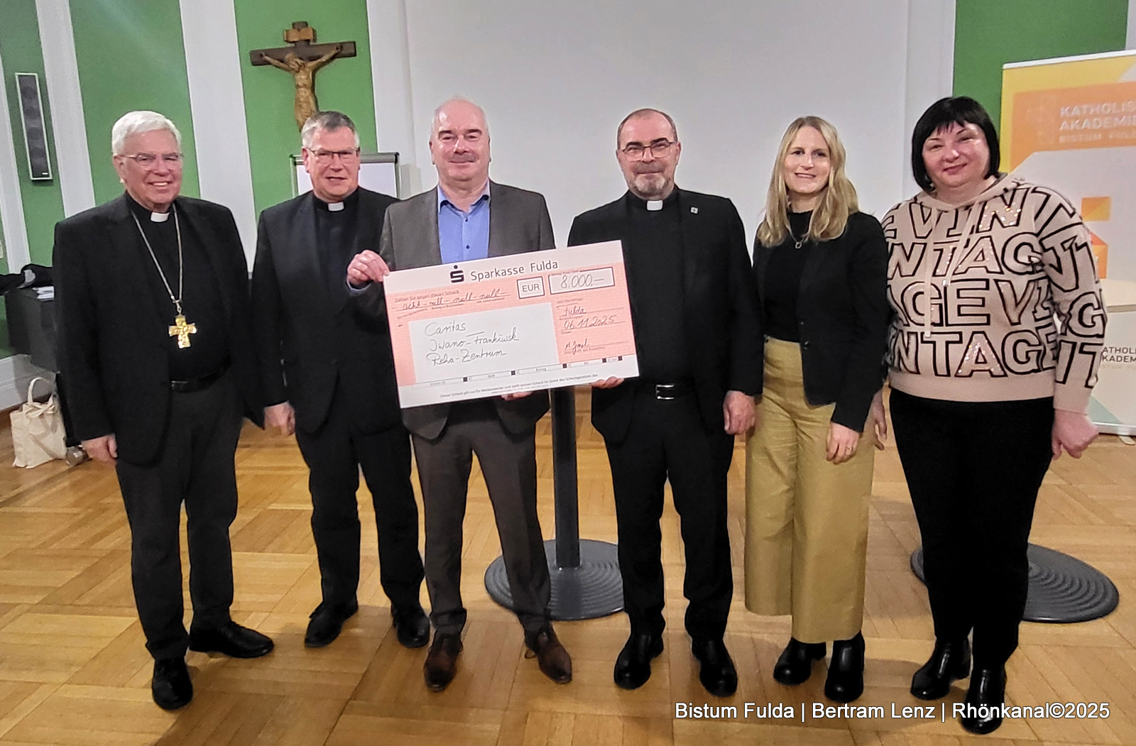 Die Gäste zeigten sich tief bewegt von der anhaltenden Solidarität aus Fulda. Als Zeichen der Verbundenheit überreichte die Ukraine-Hilfs-AG von Bistum Fulda, Caritas und Maltesern einen Spendenscheck mehr als 8.000 Euro für das Projekt „Rehabilitationshilfe für Erwachsene und Kinder im ambulanten Bereich“.