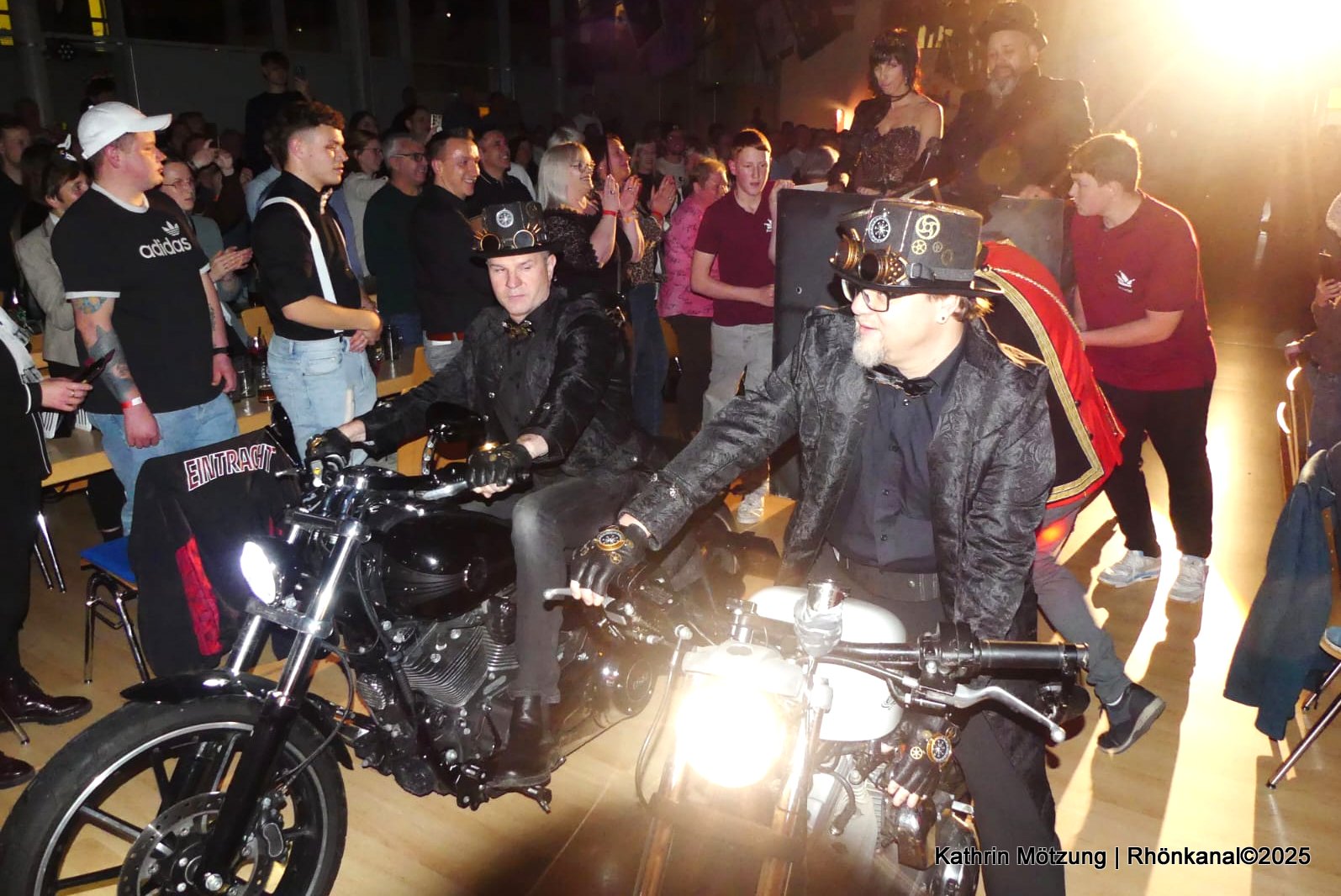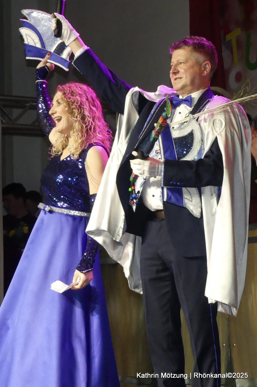 Im Anschluss folgte die spektakuläre Enthüllung des neuen Prinzenpaares. Die Schlosshalle bebte, als lautes Gedröhne ertönte: Mit Motorrädern und unterlegt von Rammstein-Musik fuhr das neue Prinzenpaar ein – ein spektakulärer Auftritt, der das Publikum von den Sitzen riss.