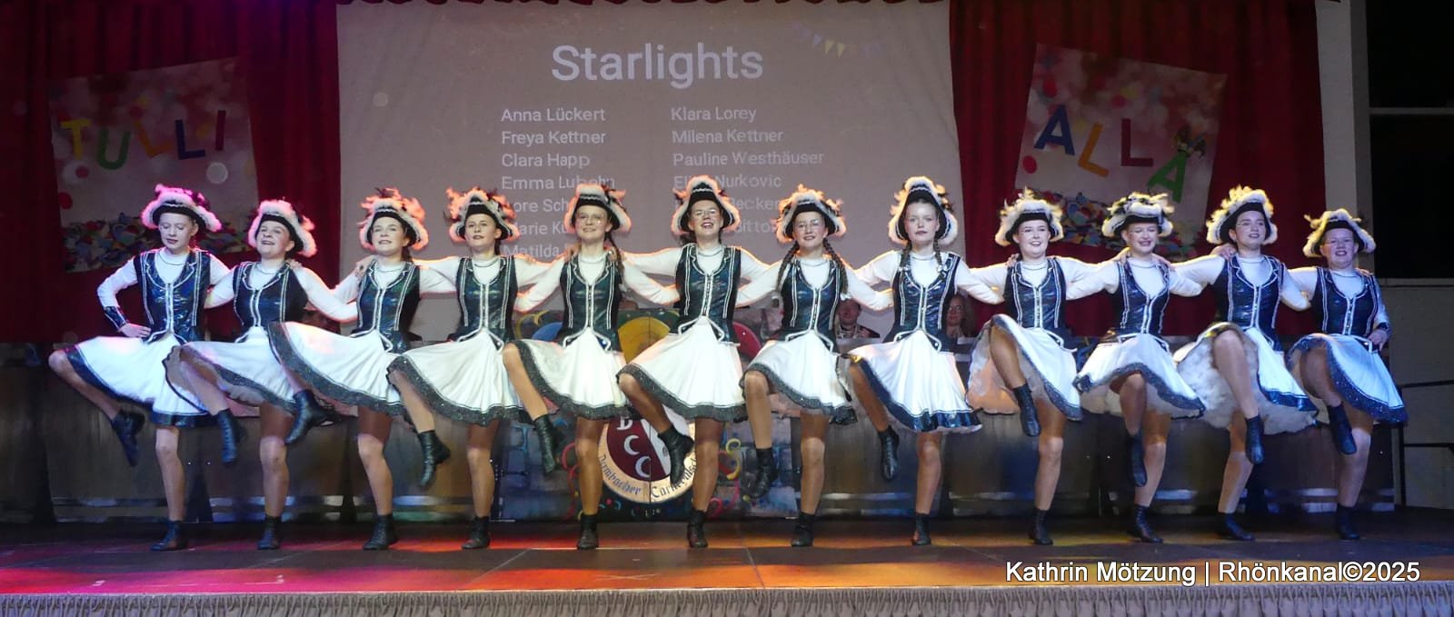 Mit einem schwungvollen Gardetanz begeisterten anschließend die Starlights, trainiert von Anna Lena Ramann, bevor als krönender Abschluss des Abends die Dancing Girls ihren mitreißenden Tanz zum Thema „Ice“ präsentierten.