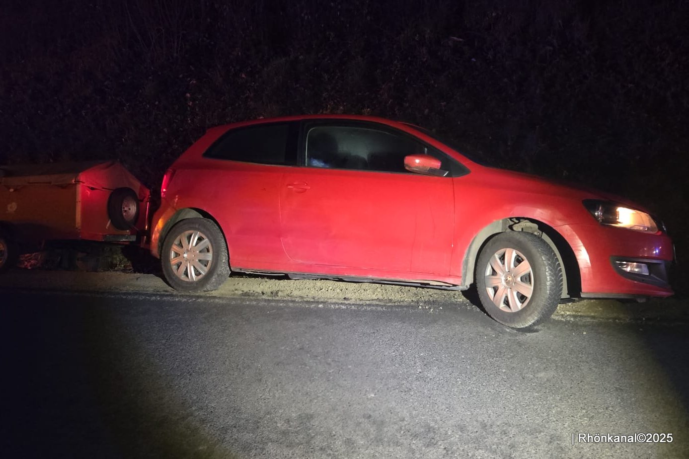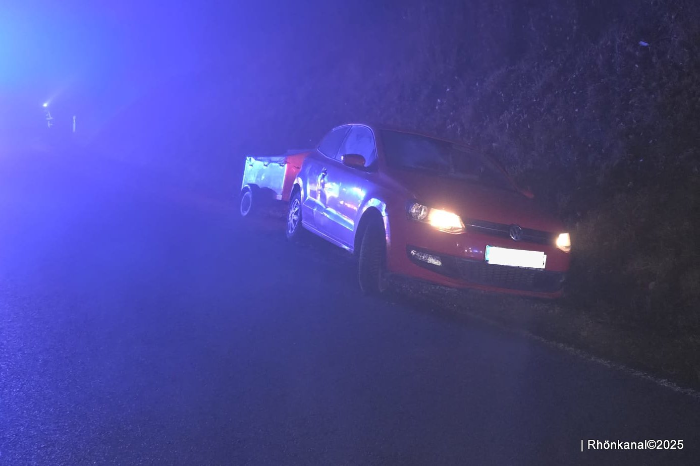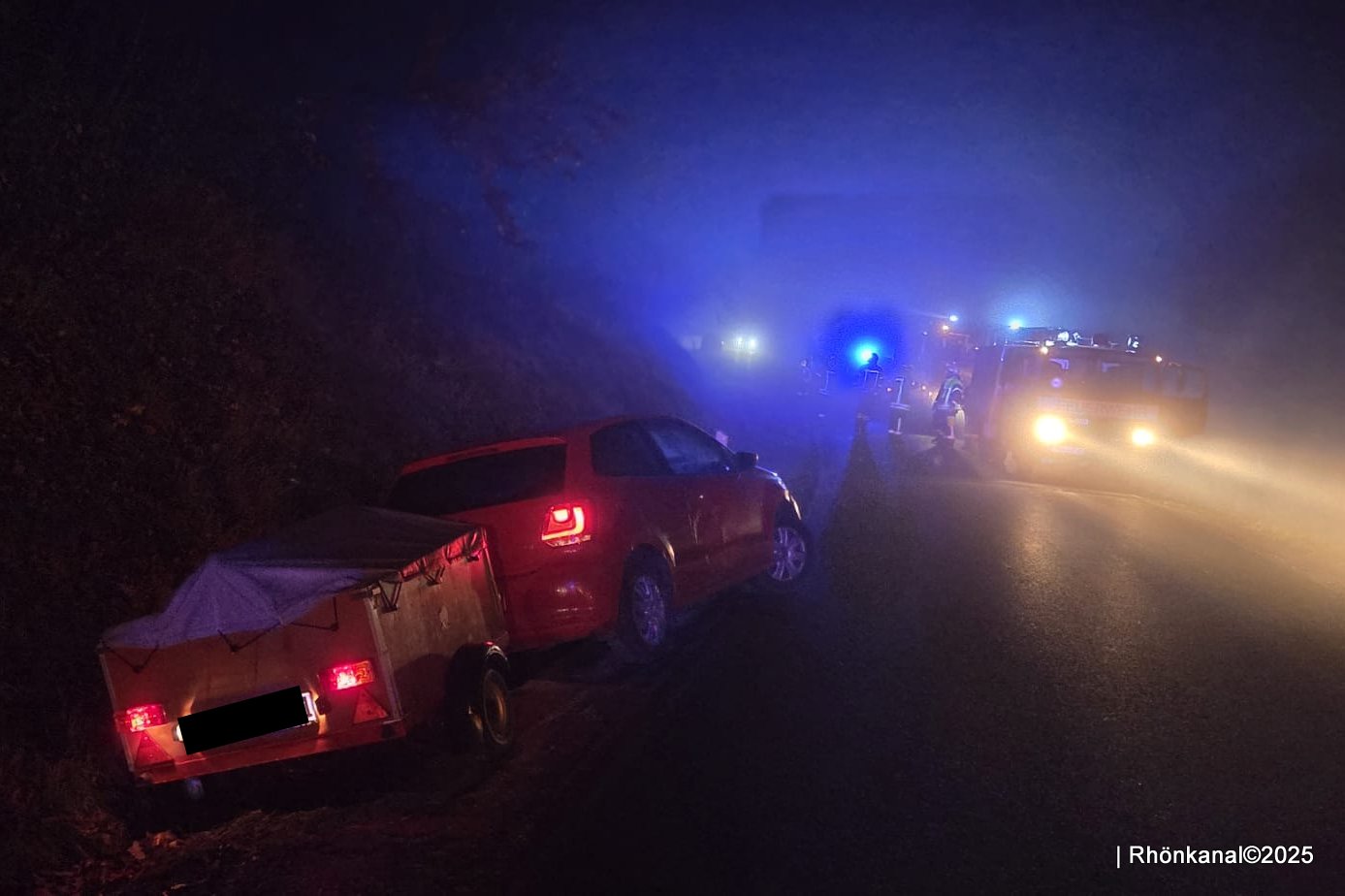 Am Mittwochmorgen kam es gegen 5.30 Uhr auf der K81 zu einem Verkehrsunfall zwischen Kaltennordheim und Oberkatz. Ein Pkw landete samt Anhänger im Straßengraben.