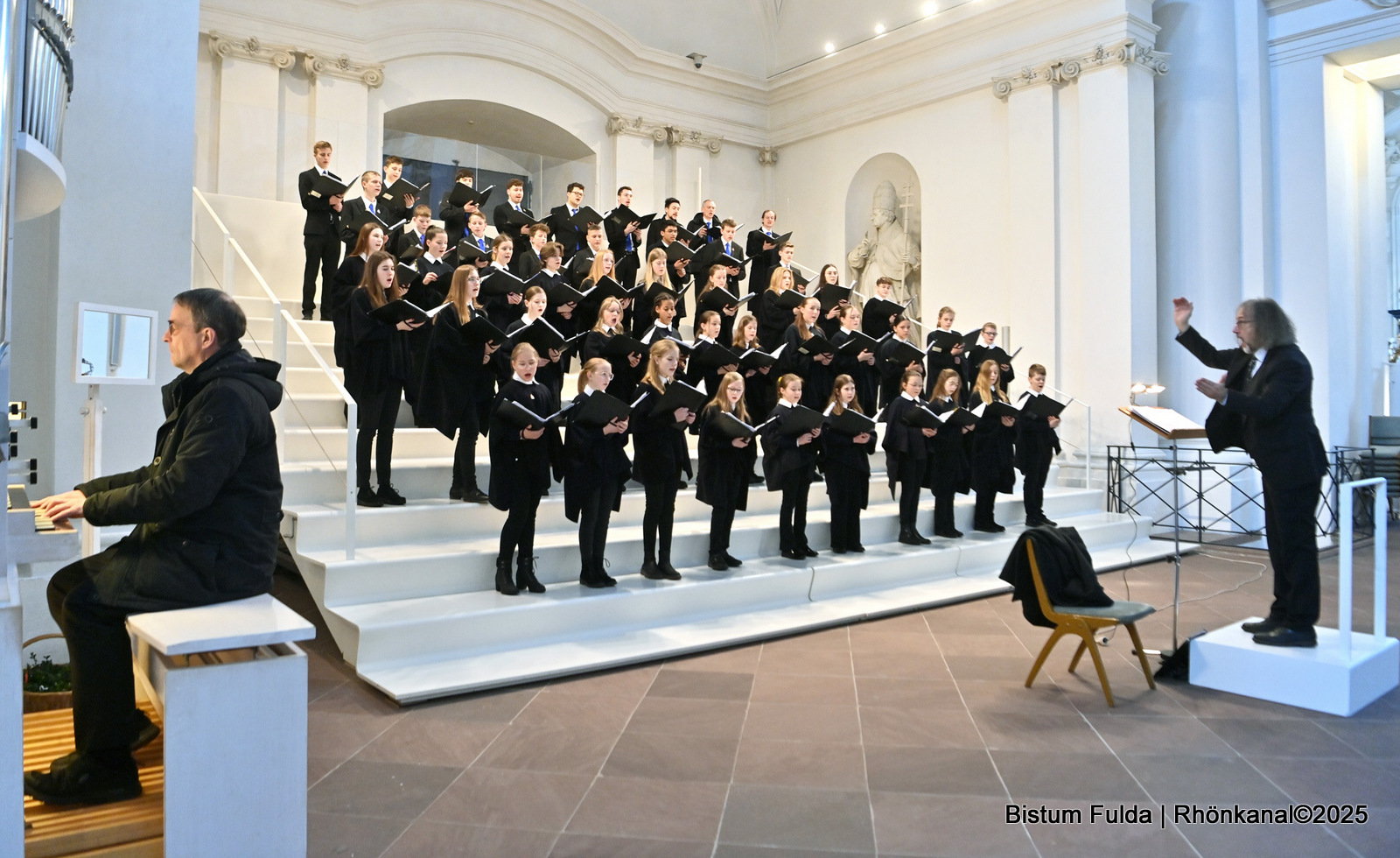 Für den musikalischen Rahmen sorgen das Amarilli-Ensemble sowie als lebendiges Beispiel der Arbeit Hubers der Jugend-Kathedral-Chor gemeinsam mit dem Domchor Fulda.