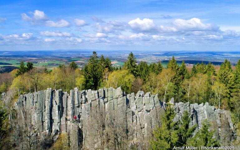 Sie ist imposant, uralt und von außergewöhnlicher geologischer Bedeutung: die Steinwand bei Poppenhausen im hessischen Teil des UNESCO-Biosphärenreservats Rhön.