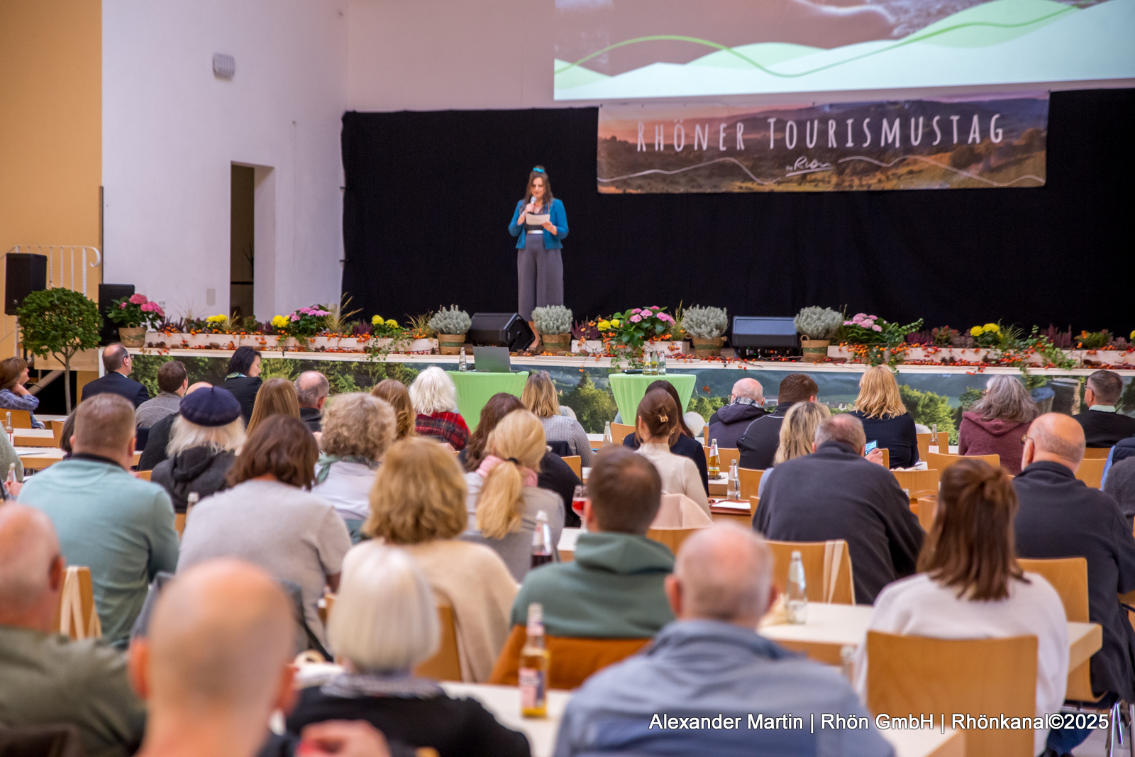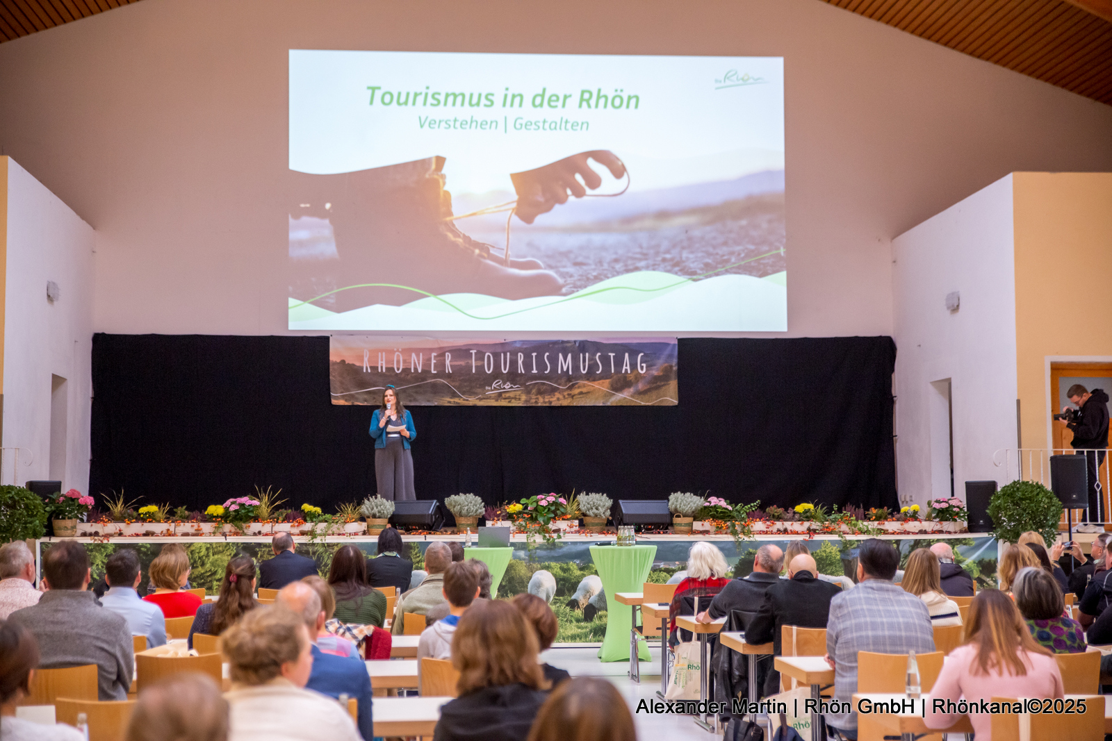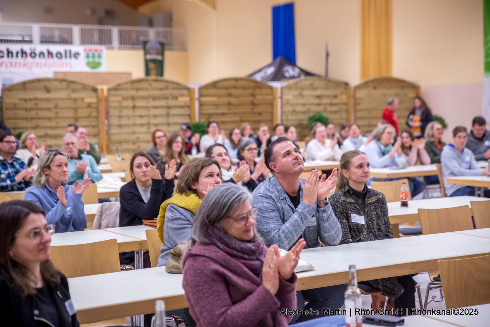 Es kamen rund 120 Teilnehmerinnen und Teilnehmer aus der ganzen Rhön zusammen, darunter GastgeberInnen, TouristikerInnen, Gastronomen, ProduzentInnen, Event-AnbieterInnen und InfluencerInnen, um sich über aktuelle Entwicklungen, gemeinsame Perspektiven und neue Ideen für die touristische Zukunft der Rhön auszutauschen.