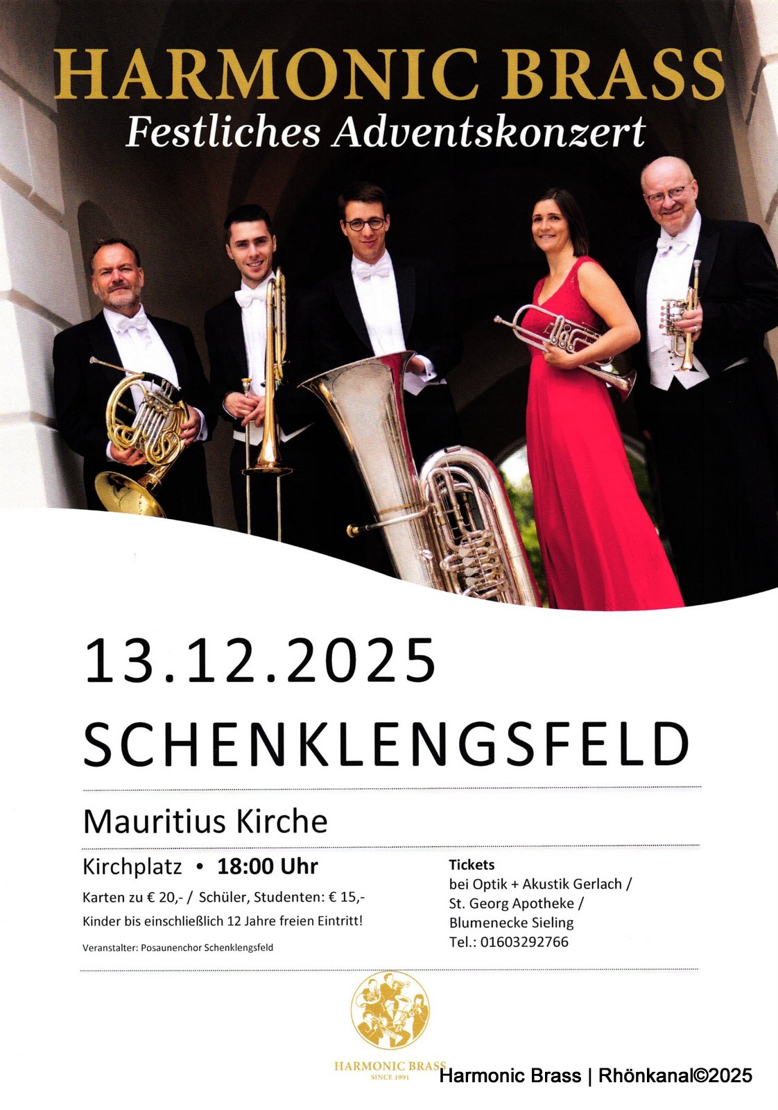 In der Mauritiuskirche in Schenklengsfeld gibt Harmonic Brass ein festliches Adventskonzert. Das Bläser- Ensemble Harmonic Brass steht seit 1991 für großen, eleganten Blechbläserklang.