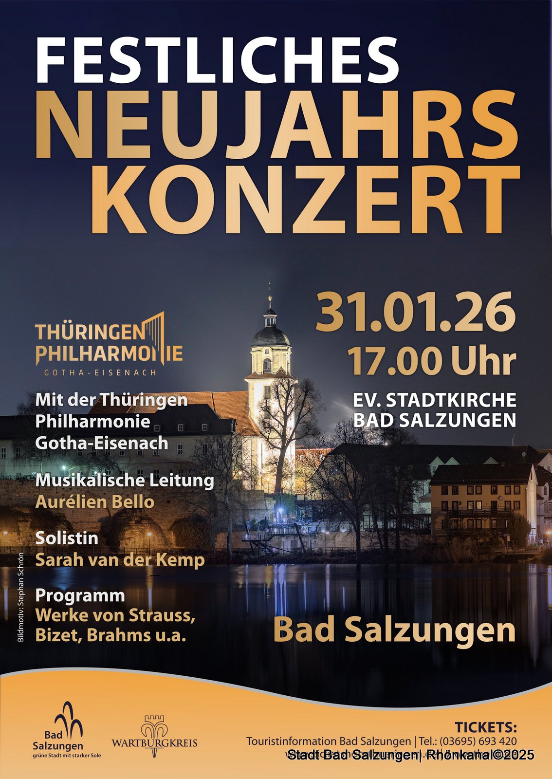 Mit Musik und der Thüringen Philharmonie Gotha-Eisenach ins neue Jahr! In guter Tradition laden die Stadt Bad Salzungen und der Wartburgkreis zu einem gemeinsamen Neujahrskonzert am Samstag, den 31. Januar 2026 um 17 Uhr in die Ev. Stadtkirche ein.