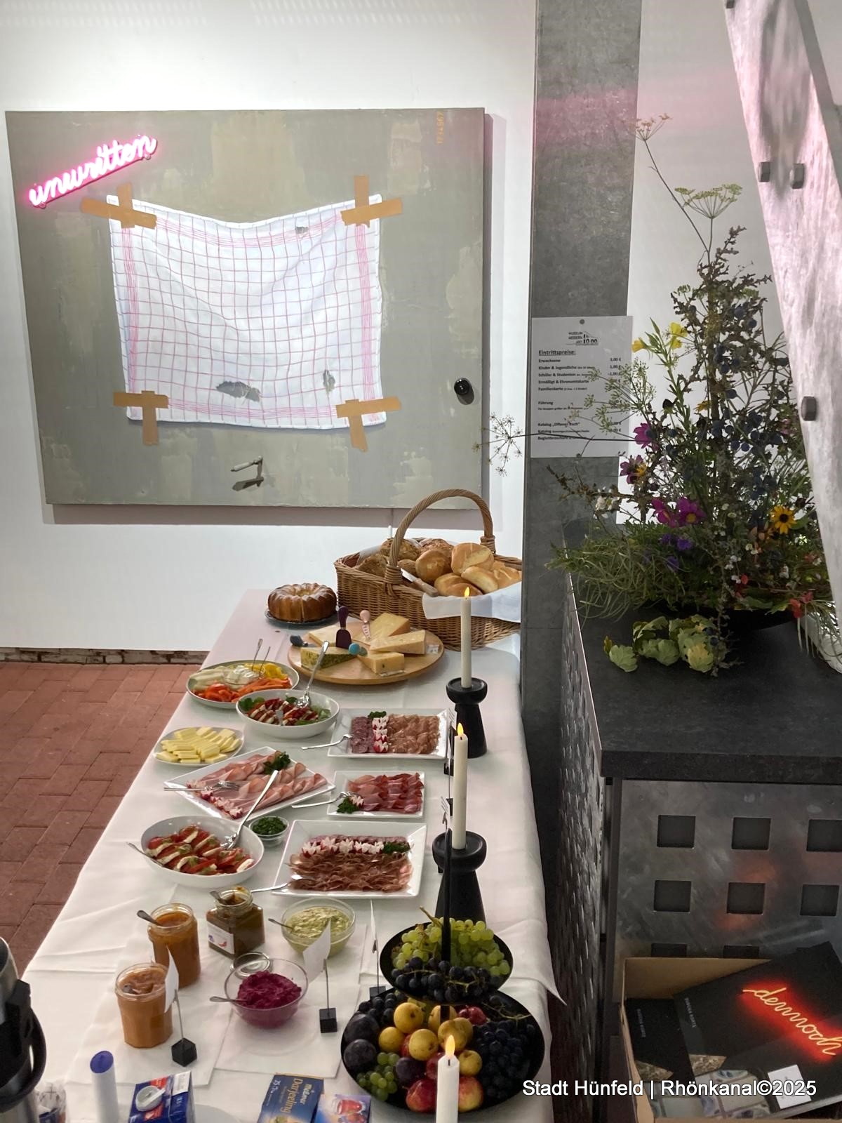 Ein Kunstfrühstück inmitten der aktuellen Sonderausstellung „Trotzdem“ hat im Museum Modern Art in Hünfeld stattgefunden. Für die Gäste gab es ein regionales und saisonales Frühstück umgeben von Kunstwerken – organisiert vom Stiftungsbeirat des Museums.