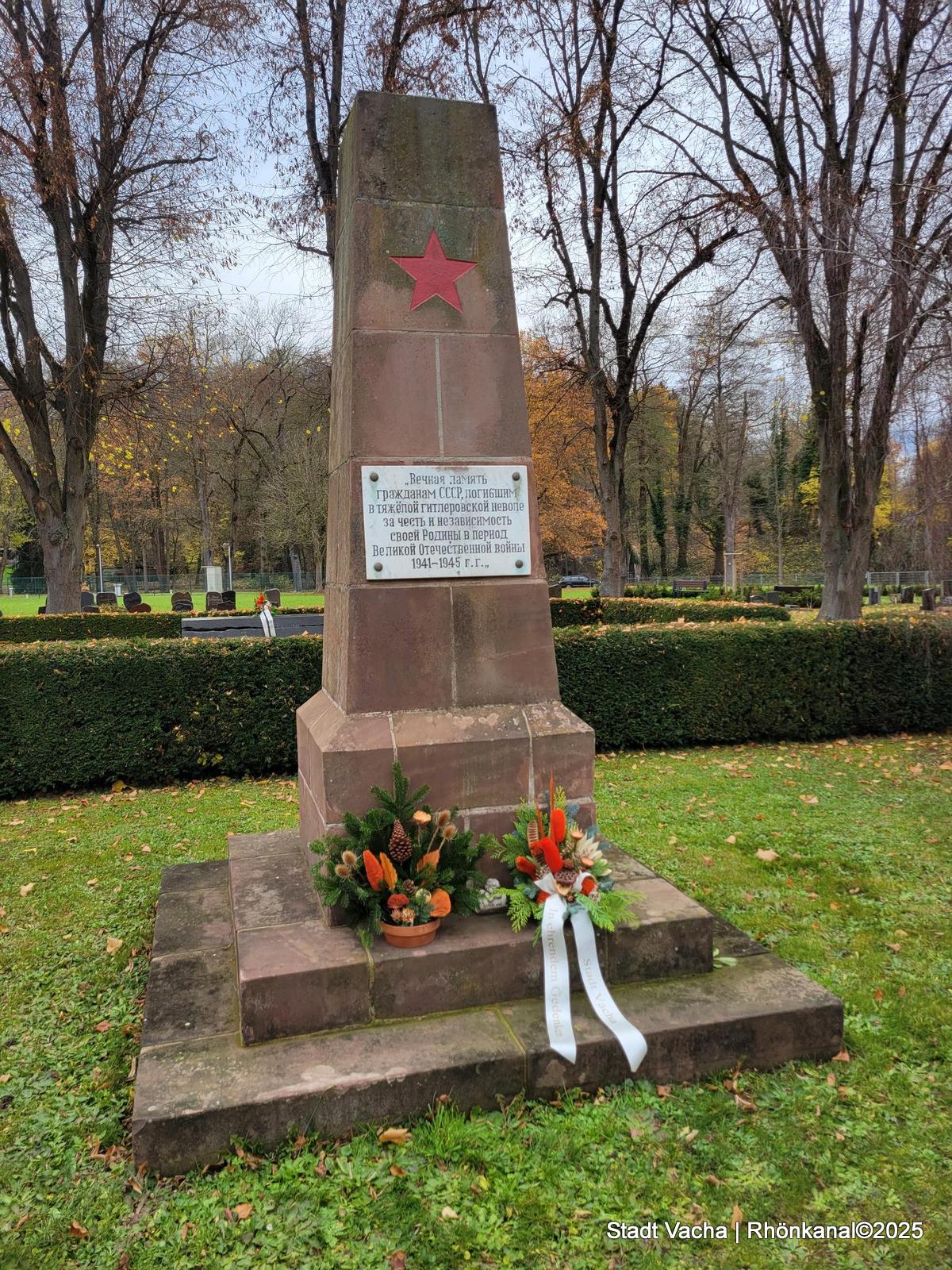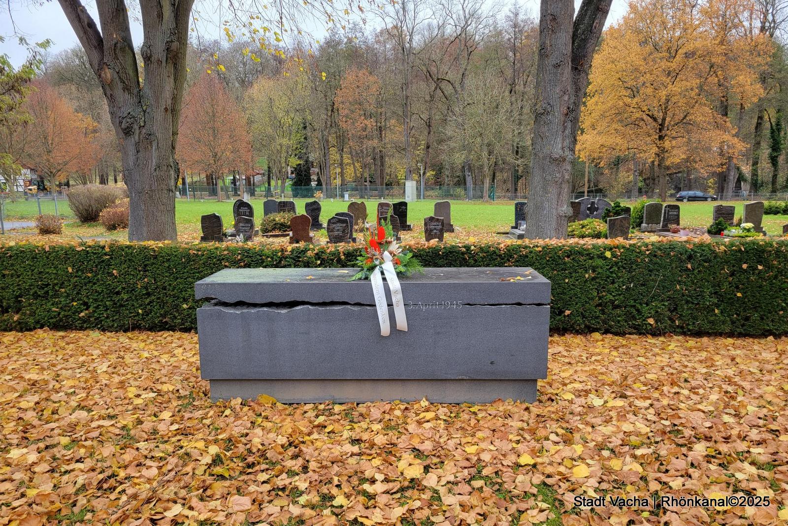 Bei einer stillen Zeremonie auf dem Friedhof Vacha legten sie Trauergestecke am Mahnmal für die am 3. April 1945 gefallenen Deutschen sowie am Denkmal für die gestorbenen sowjetischen Kriegsgefangenen nieder.