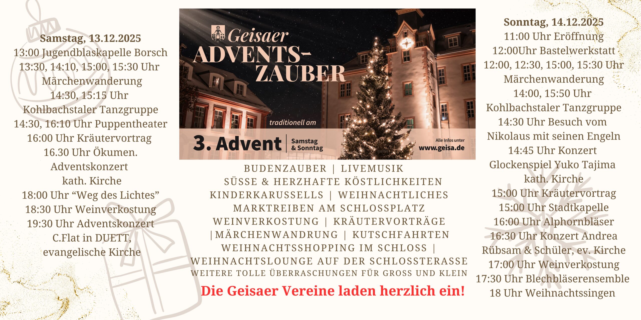 Der „Adventszauber Geisa 2025“ verspricht ein unvergessliches Erlebnis für Groß und Klein – voller Musik, Märchen, Lichter und festlicher Stimmung.