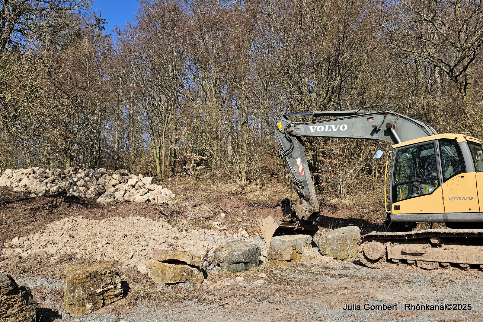 Wo nun wieder Sonne und Wärme auf den Boden treffen, wurden zwei wasserhaltende, künstliche Laichgewässer angelegt. Zusätzlich sorgen aufgeschichtete Steinriegel und Totholzhecken für wertvolle Versteckmöglichkeiten.
