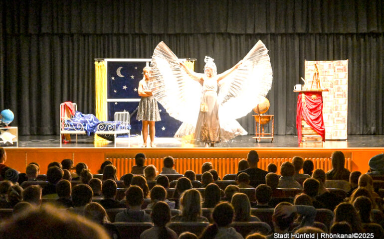 Die Kinder der Hünfelder Grundschulen haben sich auf eine spannende Reise durch das Universum gemacht und dabei Wissenswertes über den Weltraum und die Planeten erfahren. Eingeladen zum Kindertheater im Kolpinghaus hatte die Stadt Hünfeld in Verbindung mit der Wella Kulturstiftung zu Hünfeld.