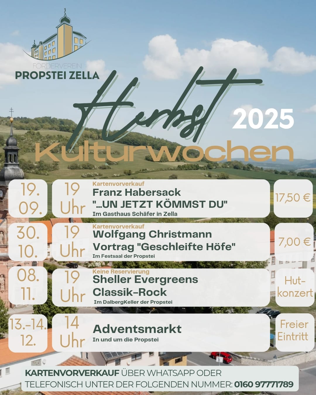 Die Tage werden kürzer, die Abende länger – Zeit für die traditionellen Herbstkulturwochen in Zella. Der Förderverein „Propstei Zella – Barock in der Rhön“ lädt auch in diesem Jahr zu einer abwechslungsreichen Veranstaltungsreihe ein, die vom 19. September bis zum 14. Dezember reicht.