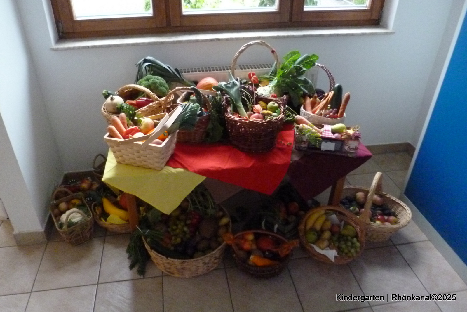 Zum Erntedankfest, Anfang Oktober, konnten bereits die jüngsten Kinder fleißig ihre mitgebrachten Erntegaben verarbeiten. Im Vorfeld wurde in den Gruppen überlegt, was sich alles aus den Gaben in den Erntekörbchen kochen lassen könnte.