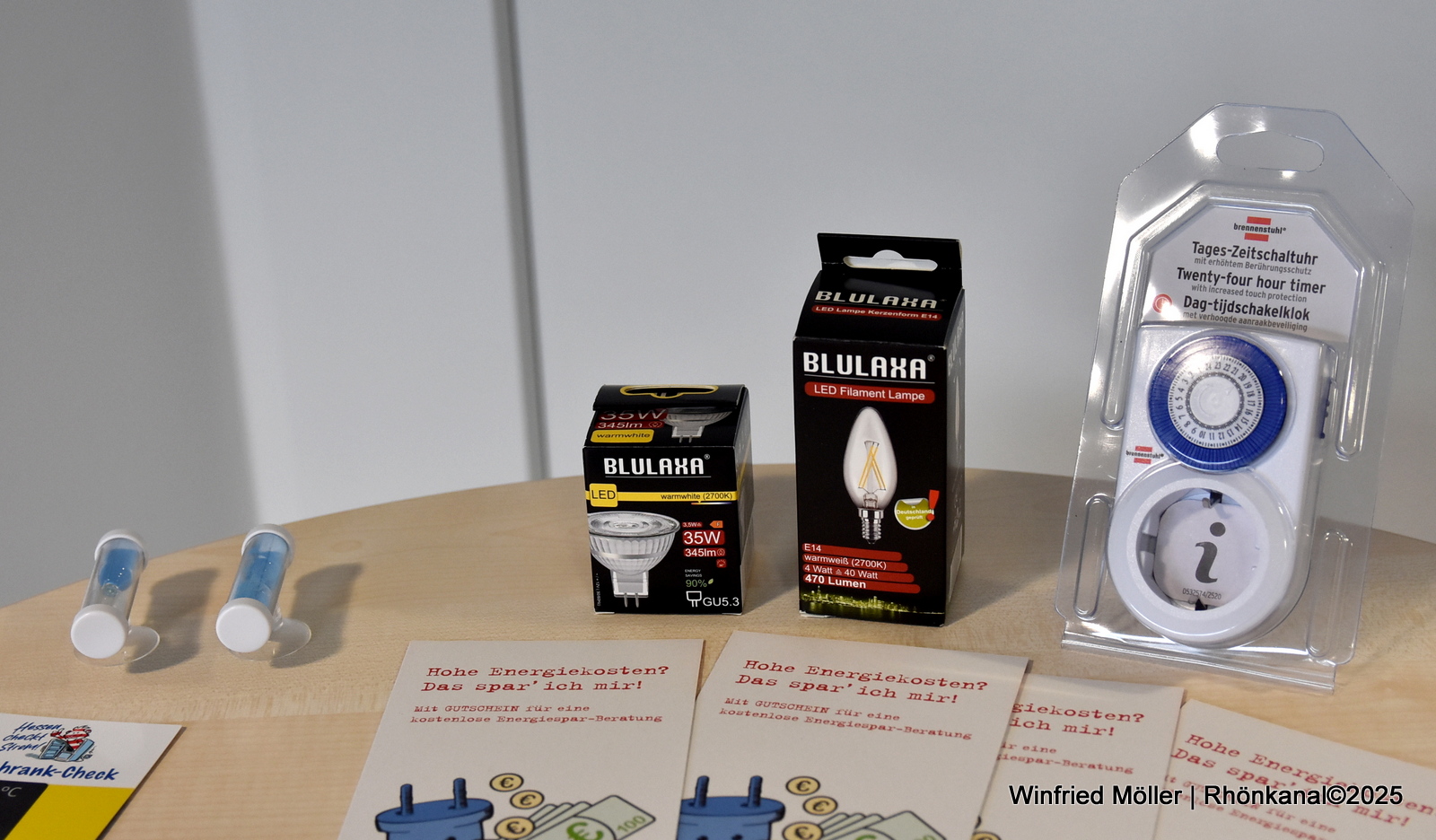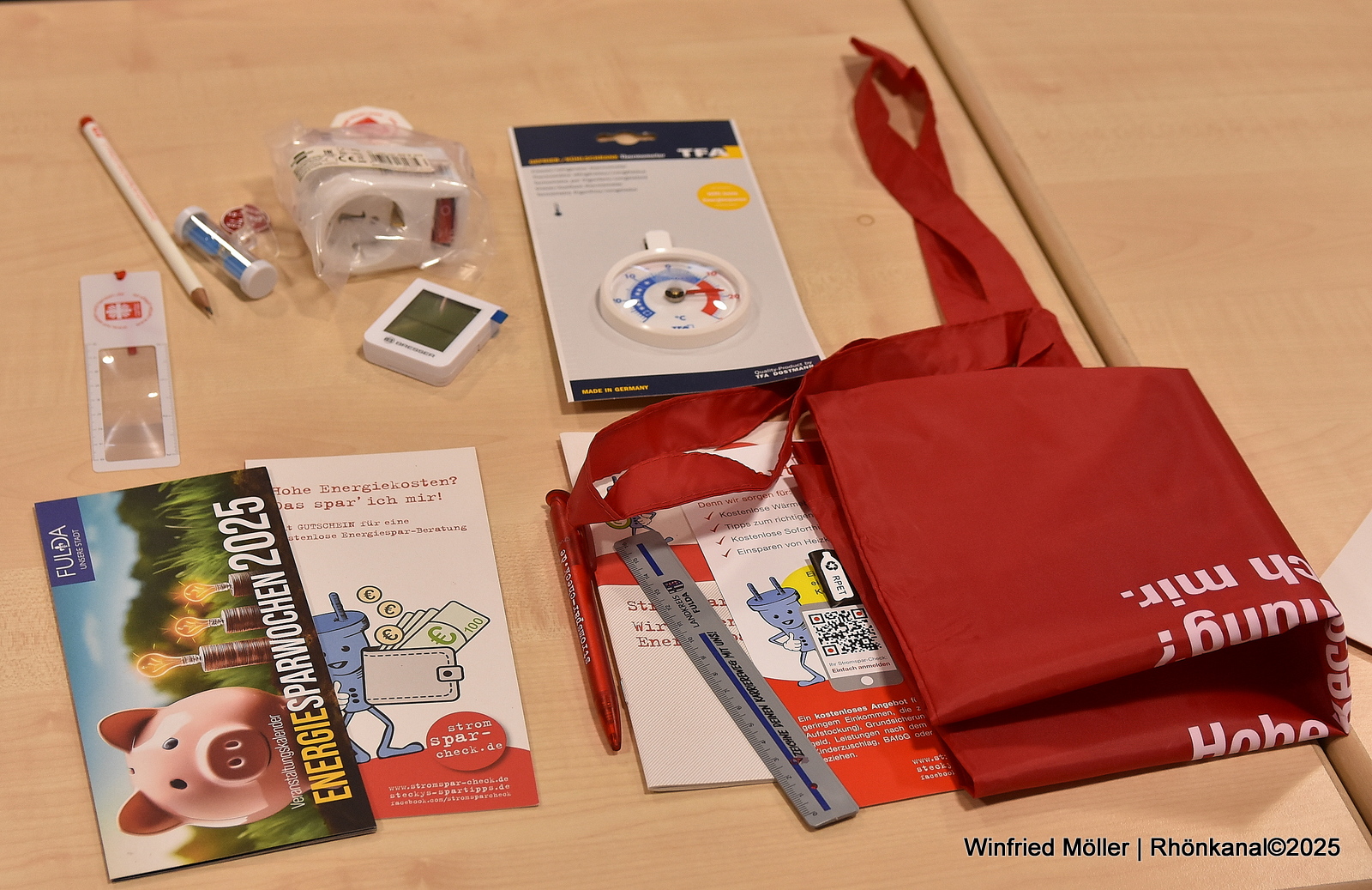 An einem Beratungsbogen einer anonymisierten Familie machen die beiden Energiesparchecker deutlich, dass durch die kostenlose Ausgabe von, vom Landkreis Fulda gesponserten Soforthilfen, wie LED-Lampen, schaltbare Steckerleisten, WC- Wasserstopp, Strahlregler für Wasserhahn, Dichtbänder für Fenster und Türen und Hygro- und Thermometer im Wert von 79 Euro Gesamtkosten von 458 Euro im Jahr eingespart werden konnten.