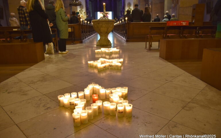 Mit diesem Lichtermeer setzte der Caritasverband für die Regionen Fulda und Geisa (RCV) in Zusammenarbeit mit dem Caritasverband für die Diözese Fulda (DiCV) und der Innenstadtpfarrei ein Zeichen der Solidarität.