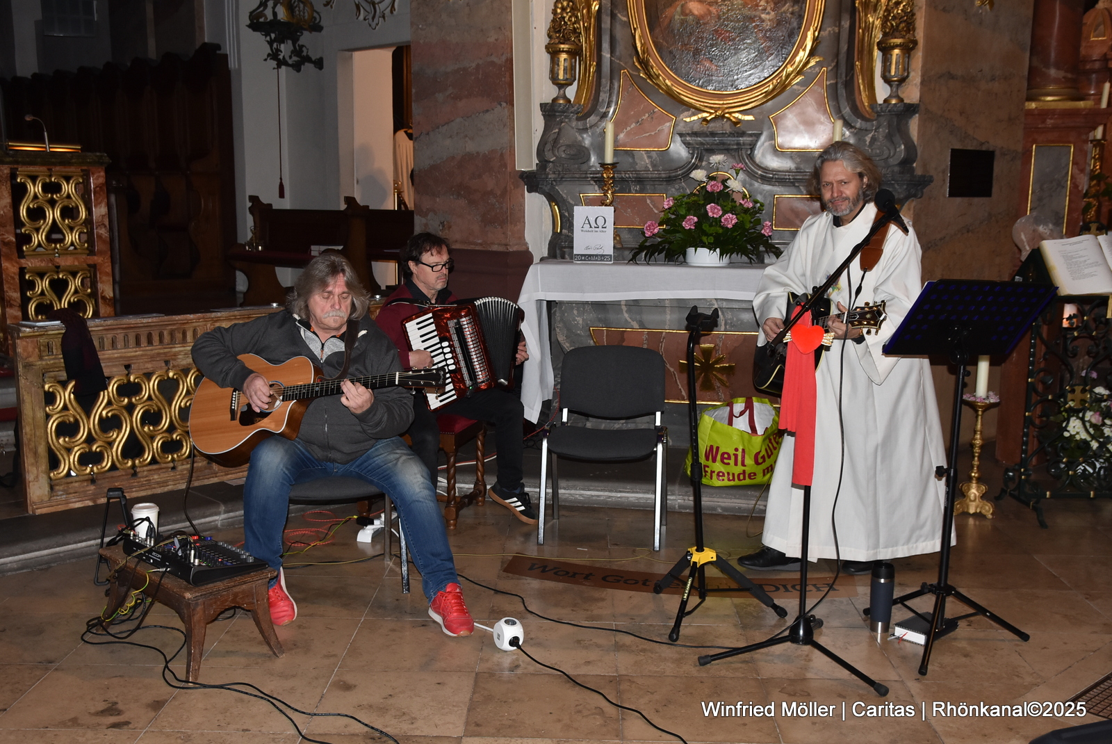 Die musikalische Begleitung des Gottesdienstes hatte die Musikgruppe „Divine Concern“ mit Addy Haas (Akkordeon), Thilo Tschorn (Gitarre) und Diakon Meins Coetsier (Gitarre und Gesang) übernommen.