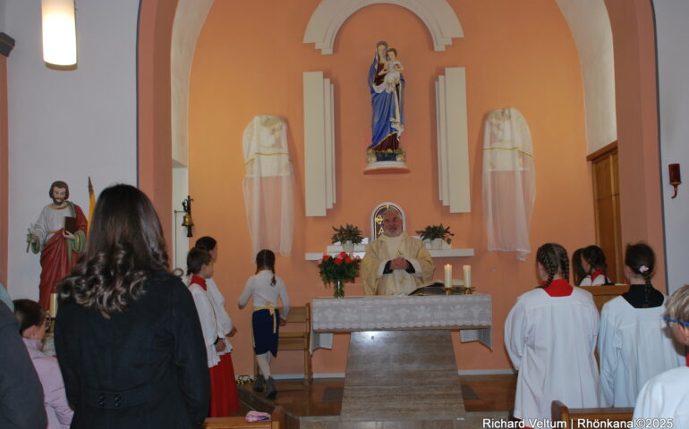 Die Filialkirche „Maria Hilf“ war gut besucht, als Stadtpfarrer Martin Lerg aus Geisa gemeinsam mit zahlreichen Messdienerinnen und Messdienern die heilige Messe zelebrierte.
