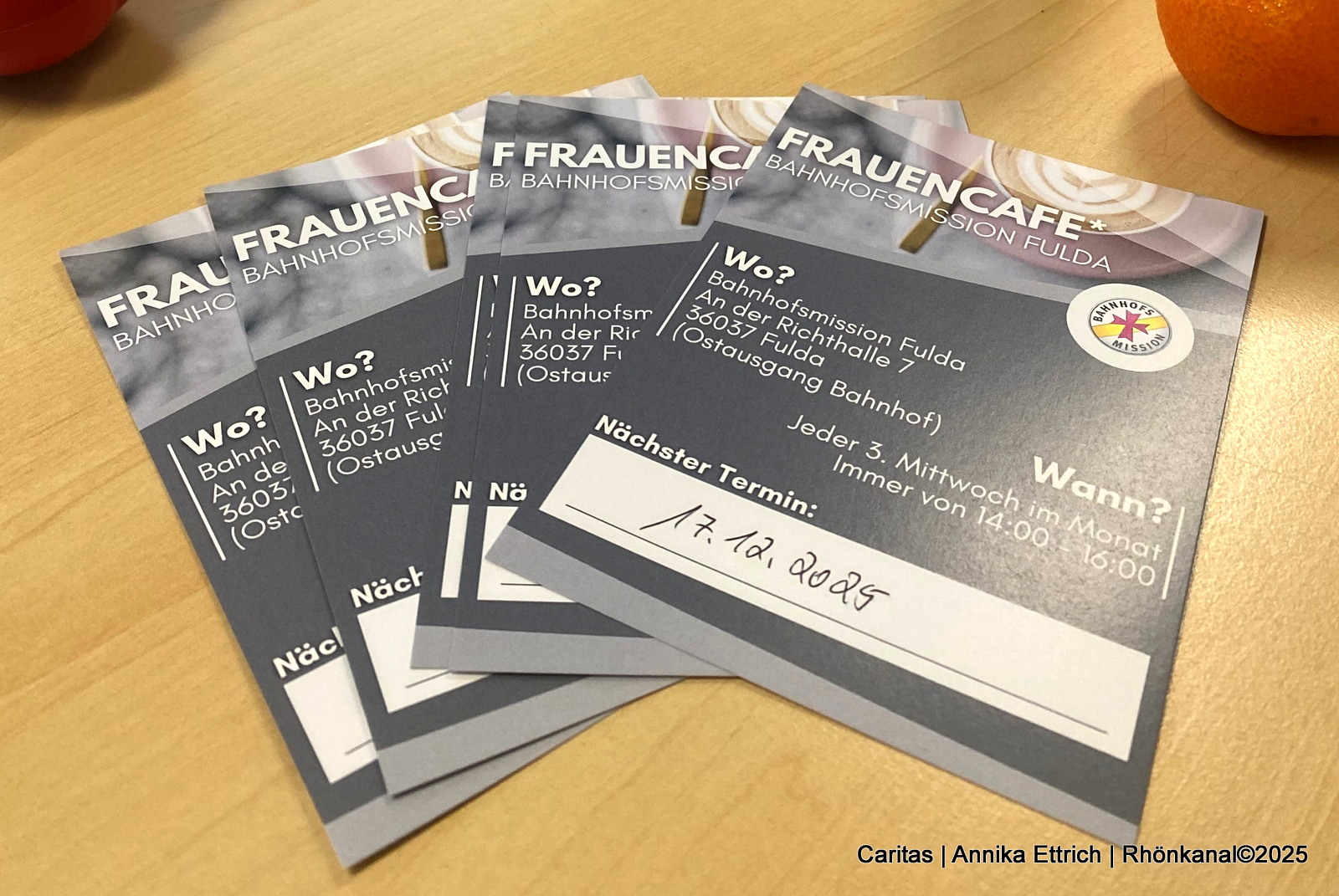 Das nächste Frauencafé findet am 17. Dezember 2025 von 14 bis 16 Uhr in der Bahnhofsmission statt, zu dem alle Frauen, auch solche die sich als Frauen identifizieren, eingeladen sind.